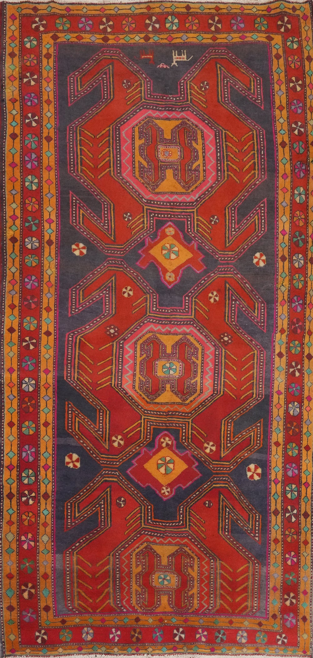 Geometric Red Kazak Oriental Runner Rug 3x7