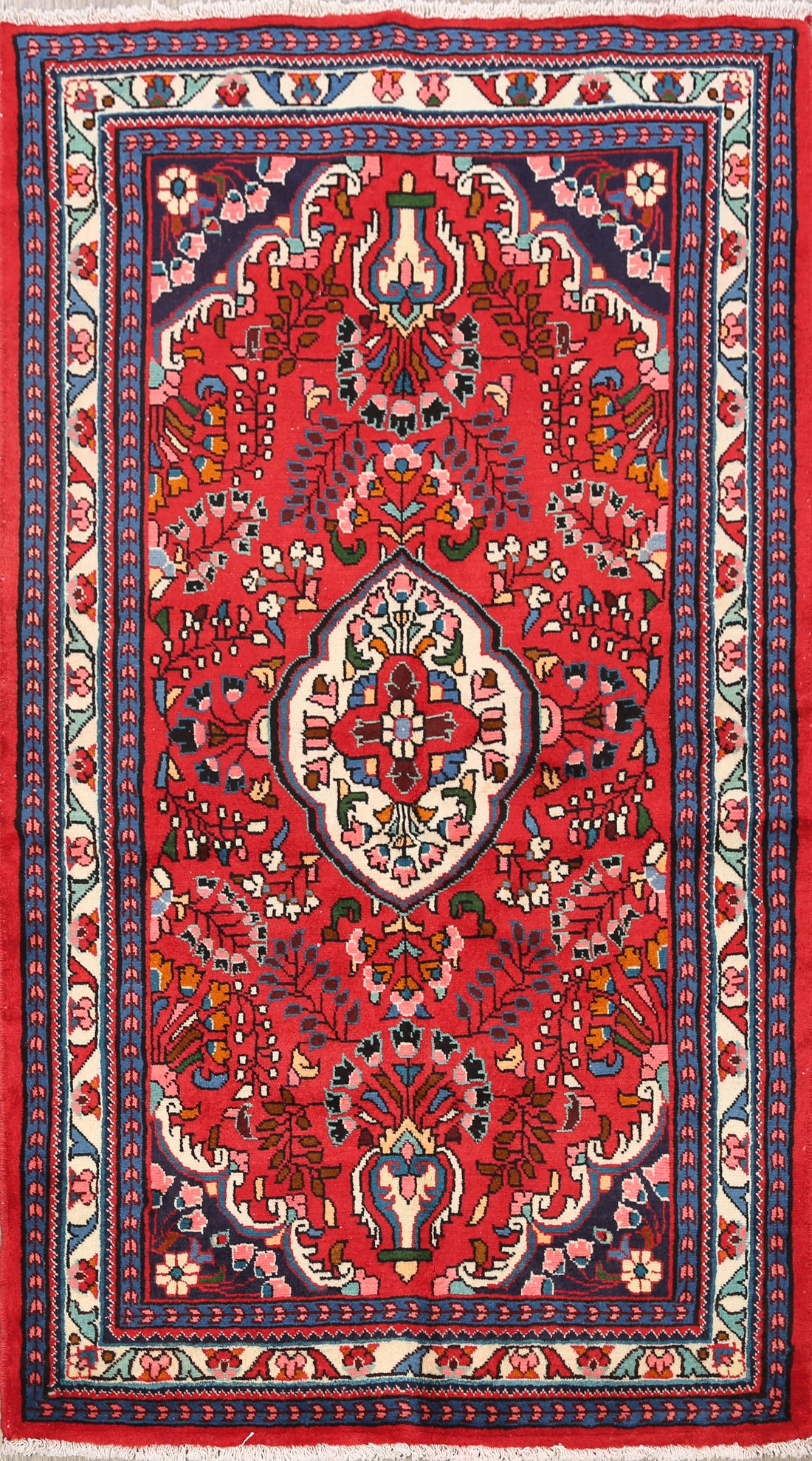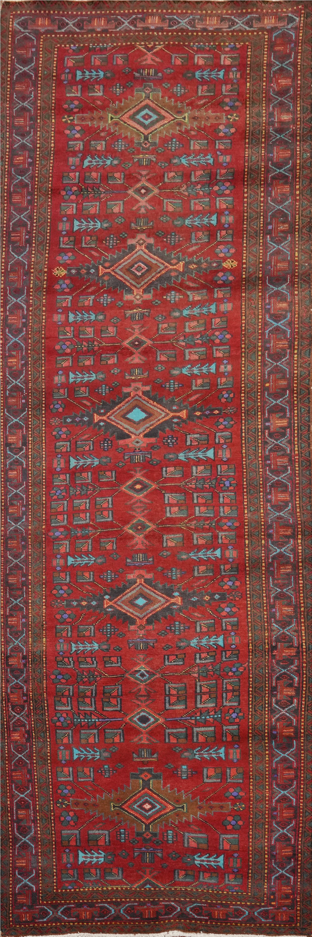 Red & Blue Handmade Meshkin Persian Runner Rug 5x10