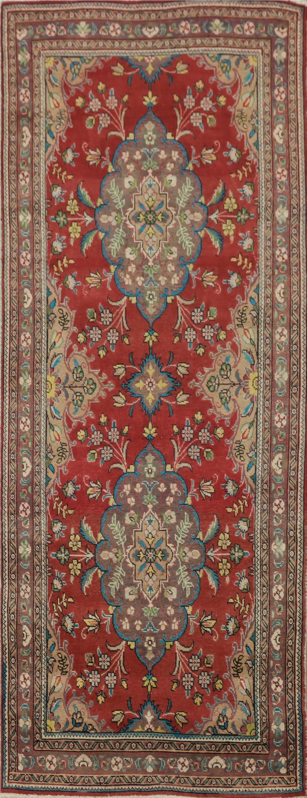 Vintage Wool Tabriz Persian Runner Rug 3x9