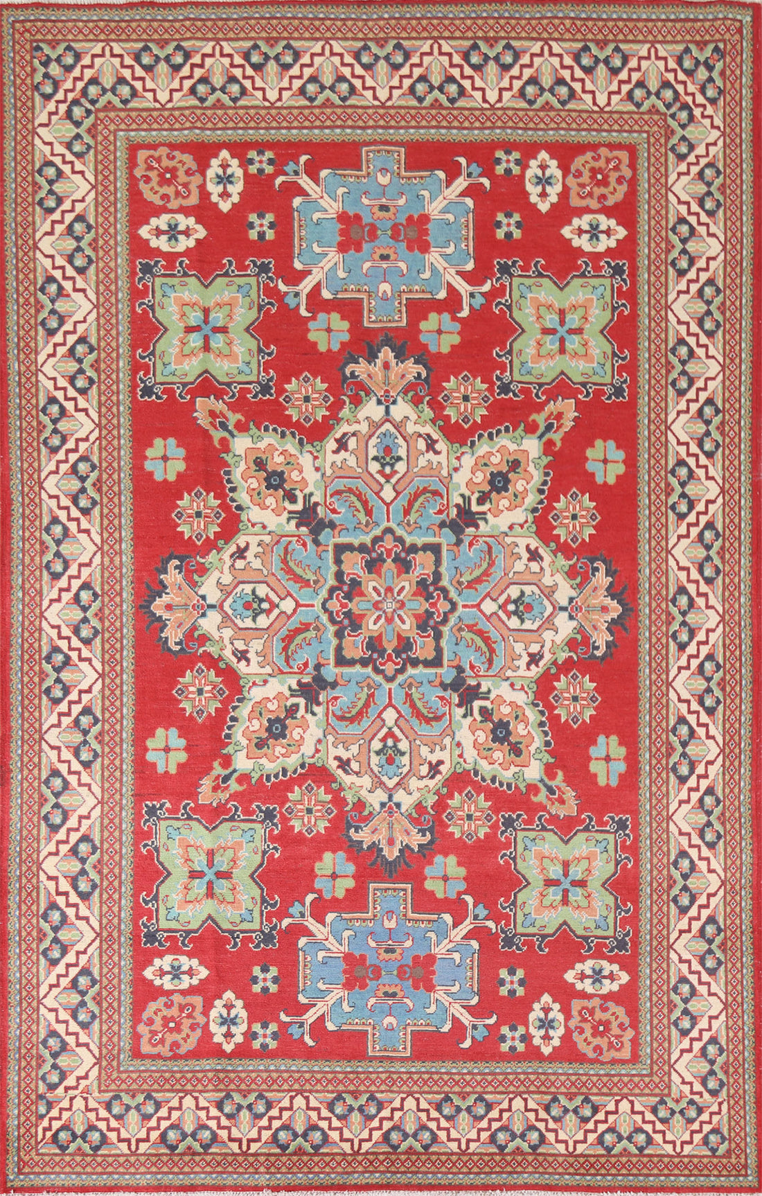 A Beautiful Genuine Pakistan Kazak rug is Hand Knotted by skillful weavers in Pakistan with...