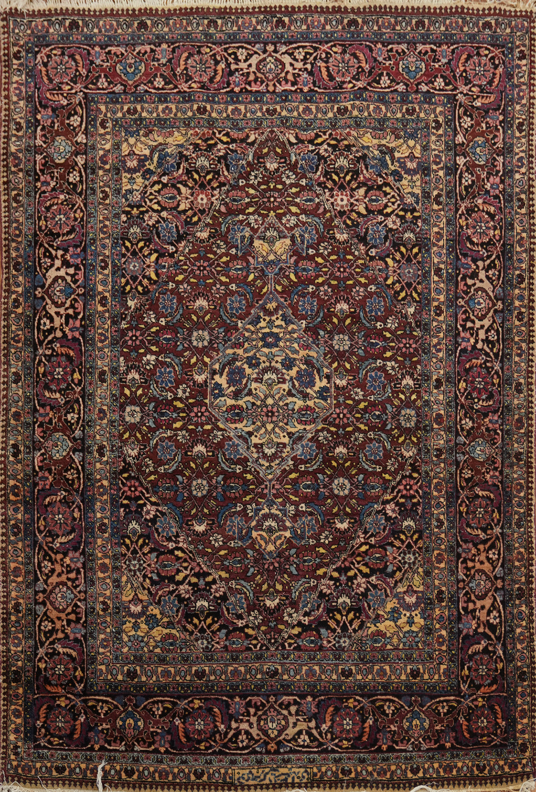 Antique Signed Mashad Vegetable Dye Persian Rug 4x6