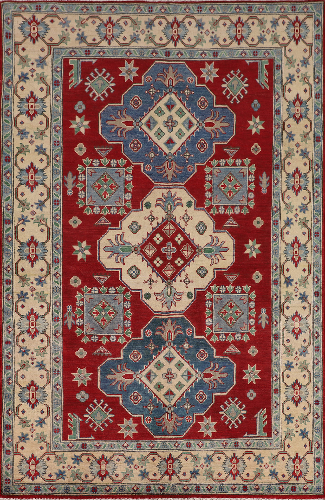 A Beautiful Genuine Pakistan Kazak rug is Hand Knotted by skillful weavers in Pakistan with...