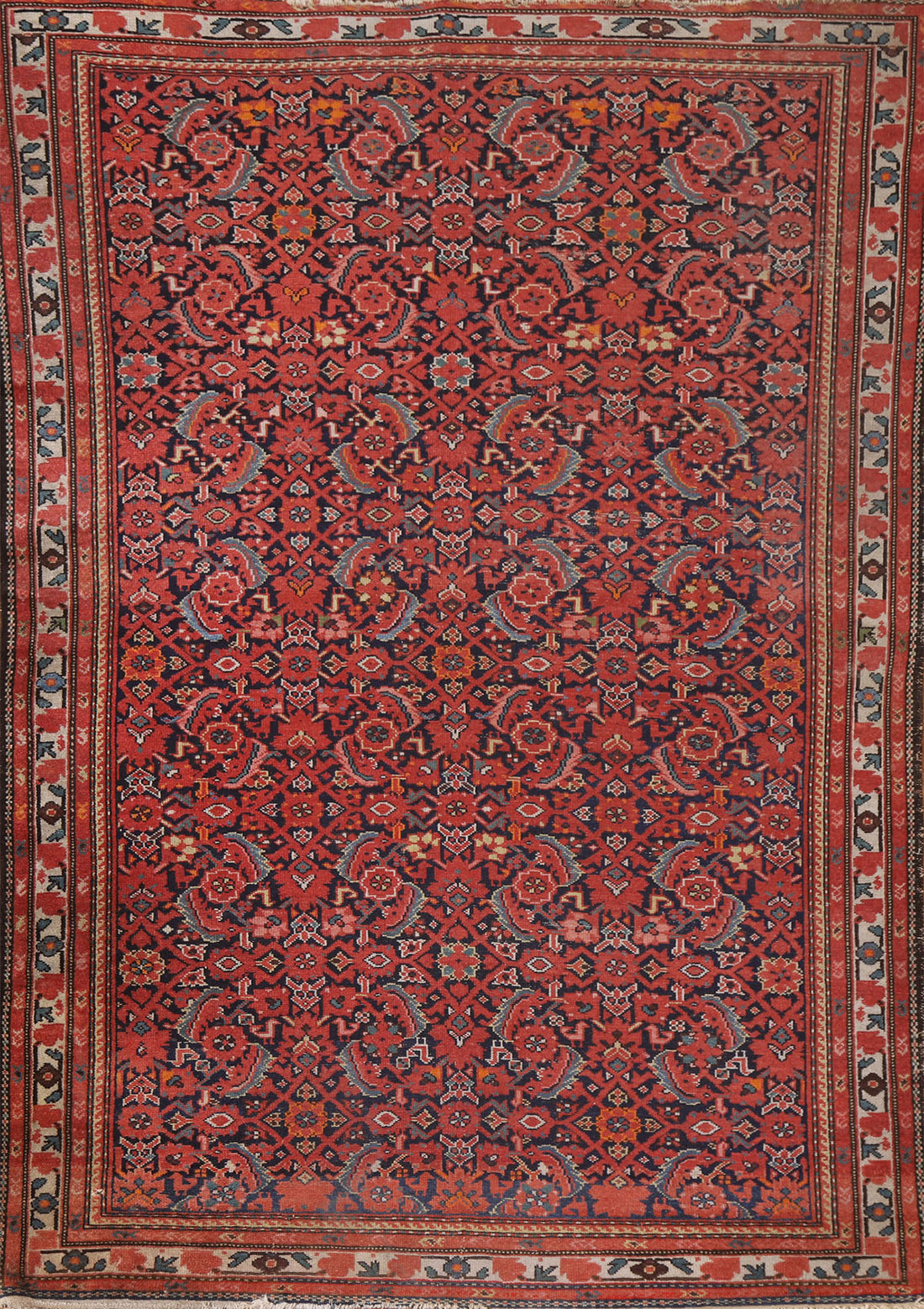 Pre-1900 Antique Vegetable Dye Bidjar Halvaie Persian Rug 4x7