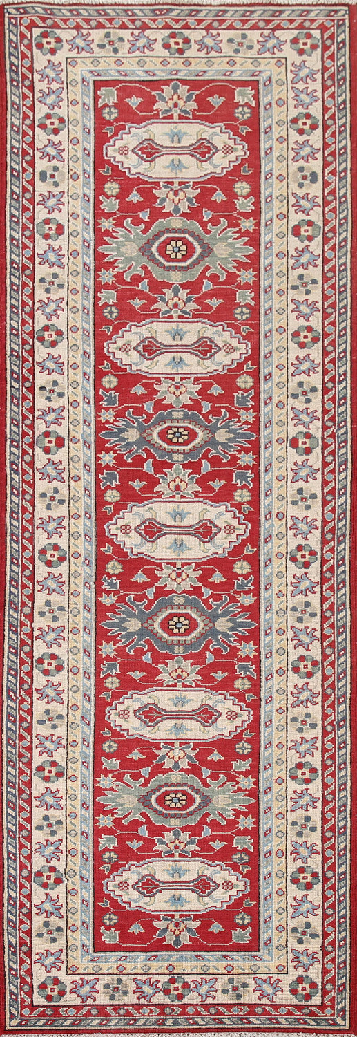 Geometric Red Kazak Oriental Runner Rug 3x10