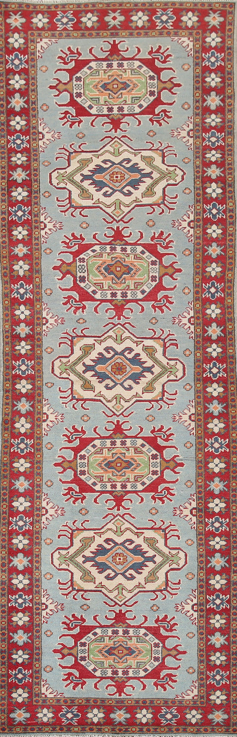 Light Blue Kazak Oriental Runner Rug 3x10