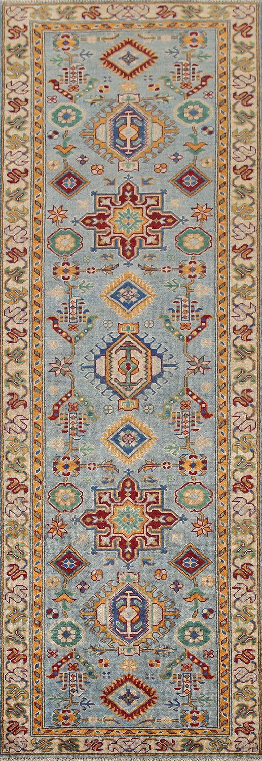 Light Blue Kazak Wool Runner Rug 3x9