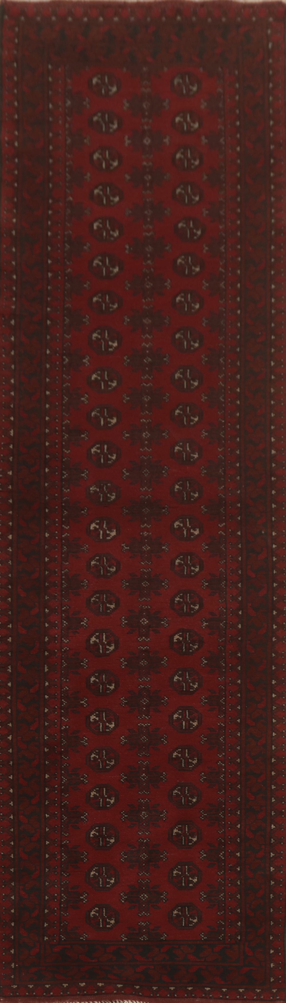 Elephant Foot Red Balouch Afghan Runner Rug 3x10