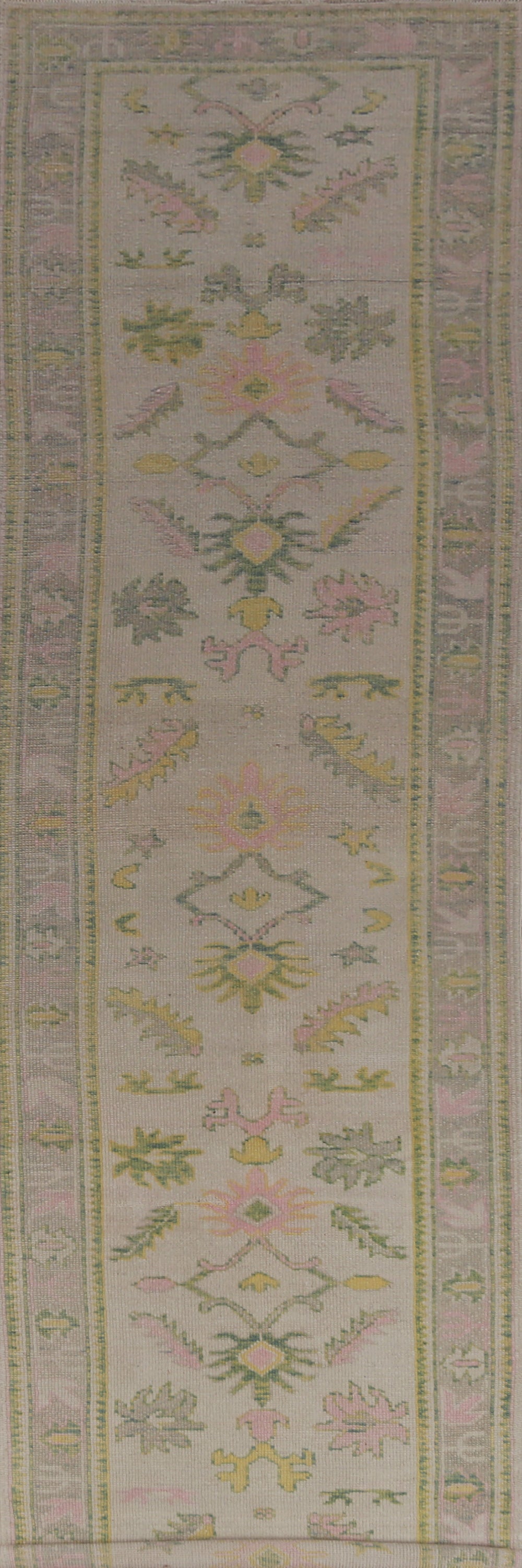 Vegetable Dye Oushak Turkish Runner Rug 3x10