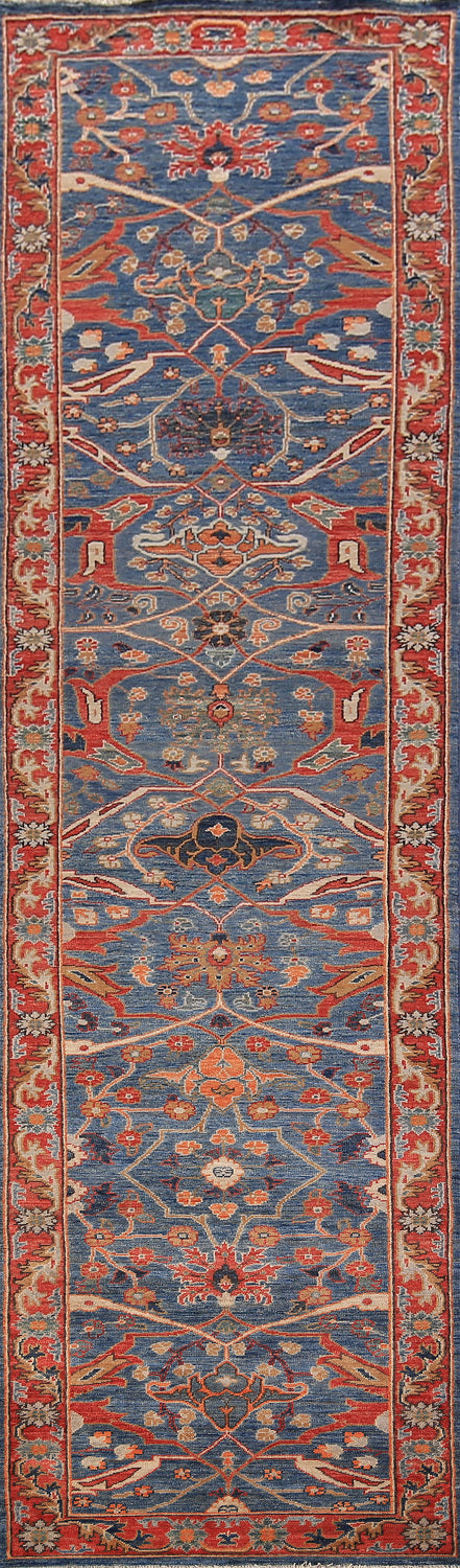 Blue Floral Ziegler Vegetable Dye Runner Rug 3x12