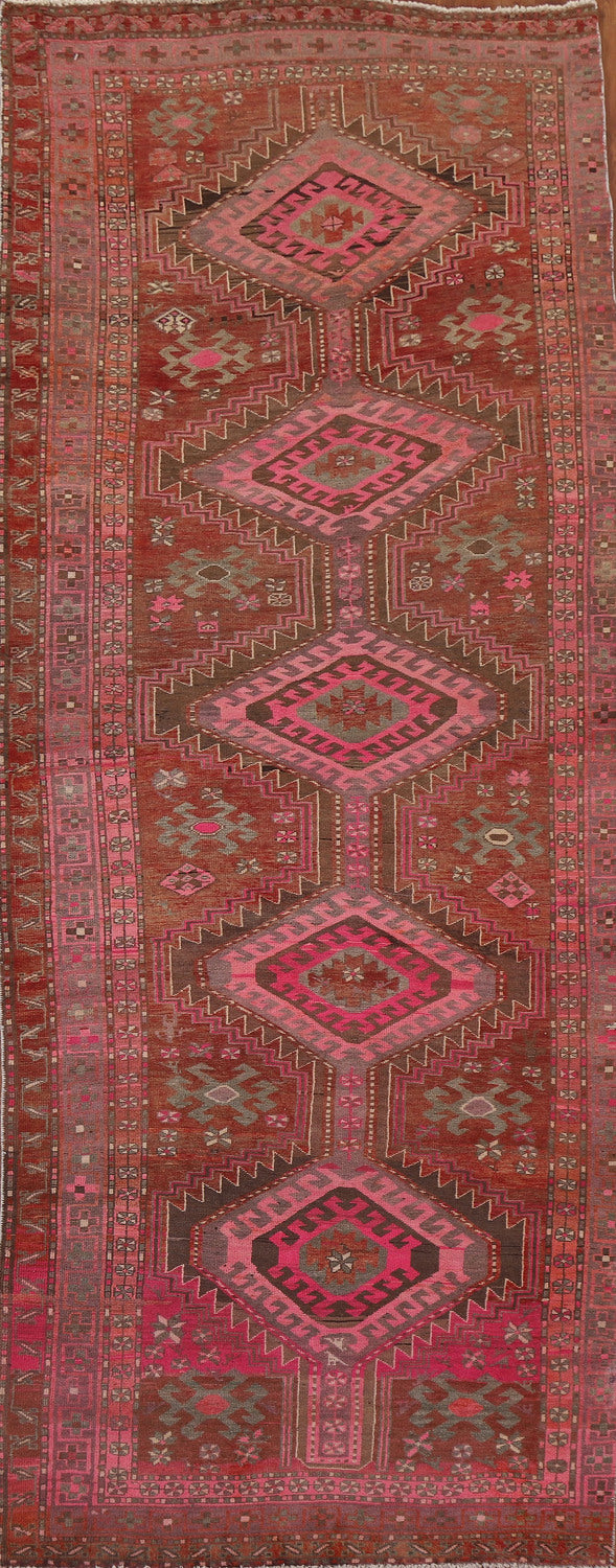 Pink Geometric Sirjan Persian Runner Rug 3x12