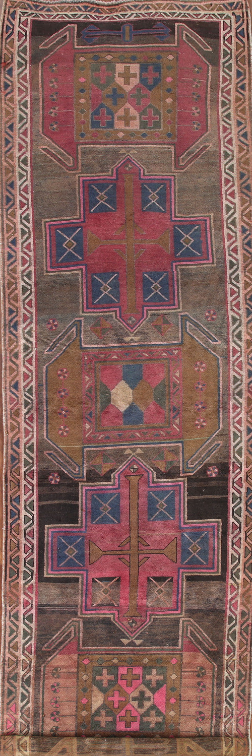 Purple Wool Ardebil Persian Runner Rug 4x10