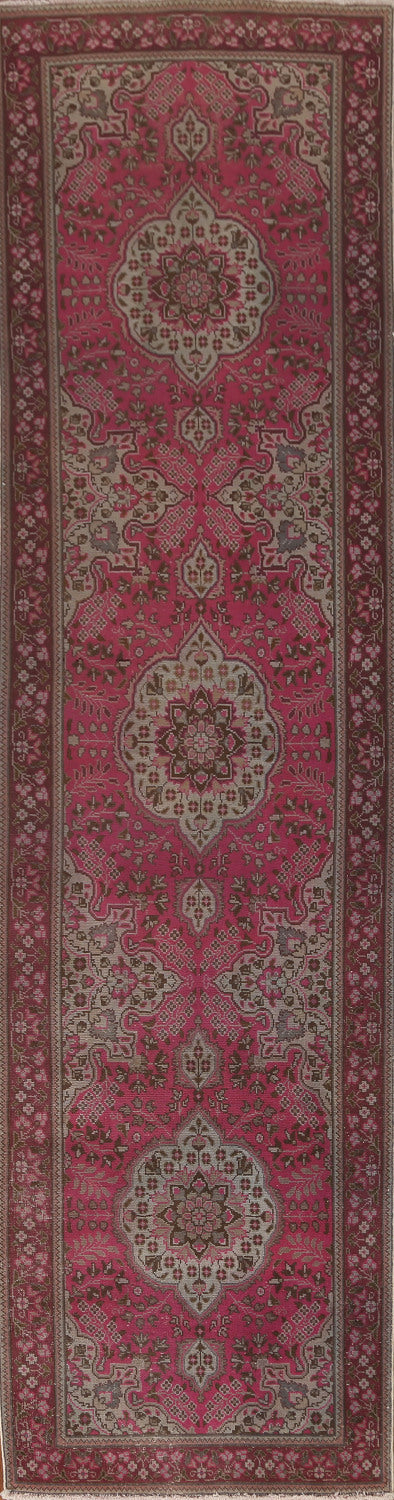 Vintage Pink Tabriz Persian Runner Rug 3x13