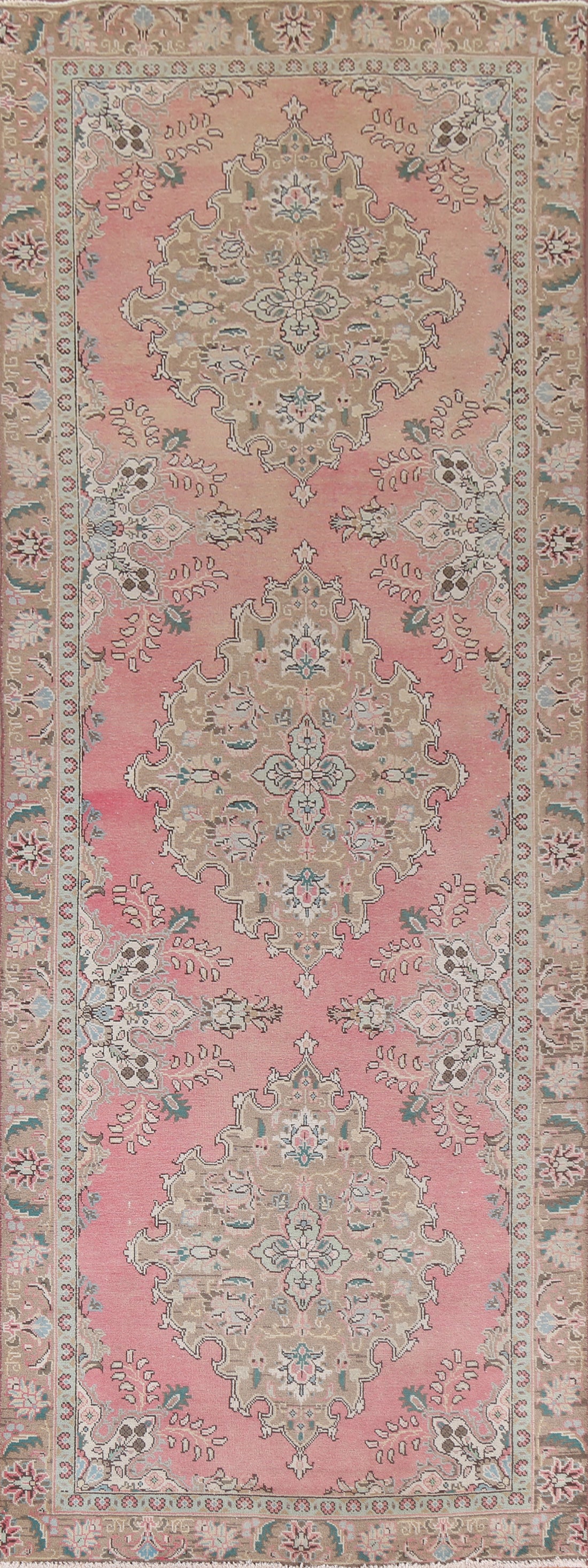 Handmade Pink Wool Tabriz Persian Runner Rug 4x12