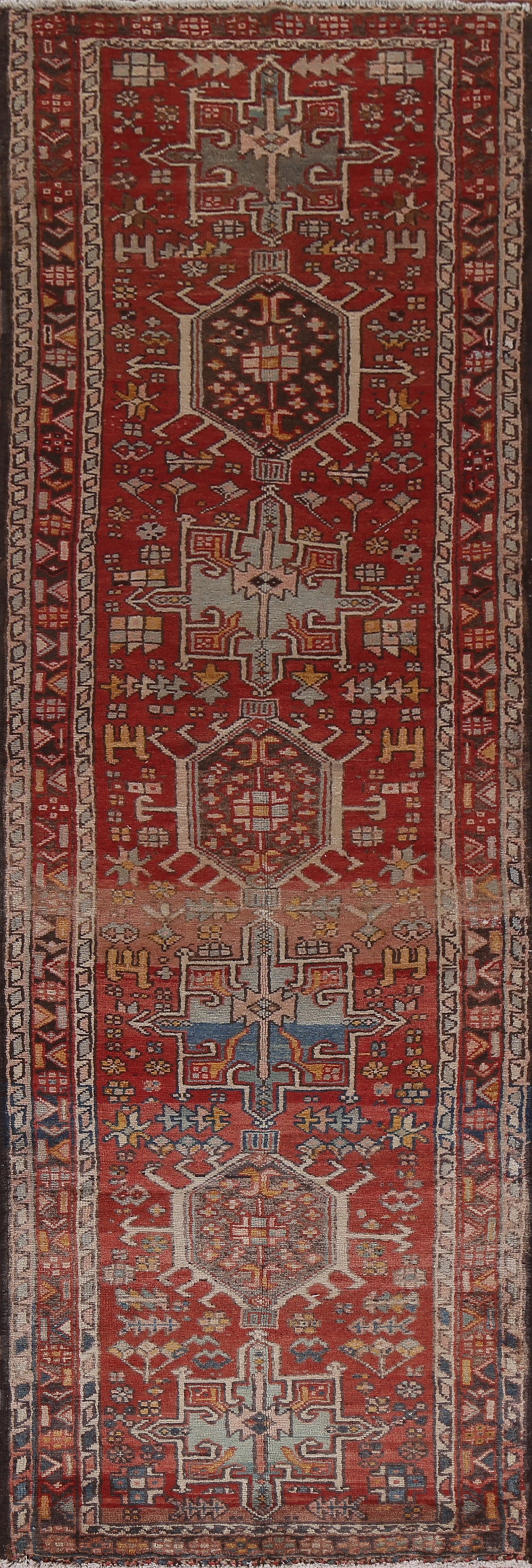Geometric Red Heriz Persian Runner Rug 3x11