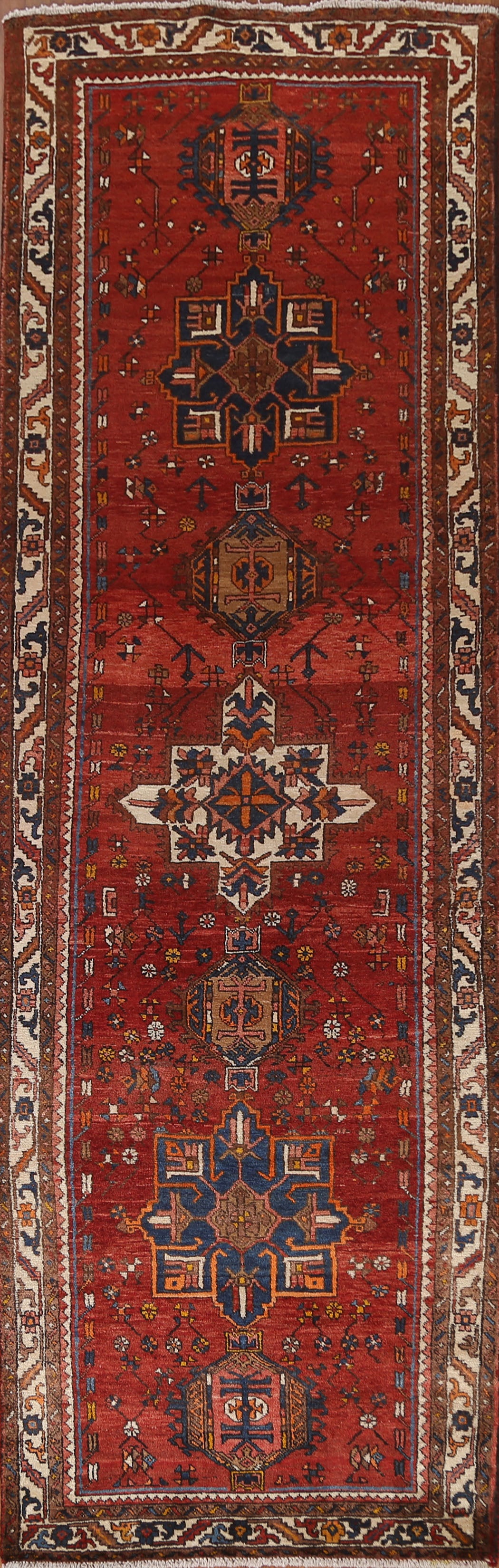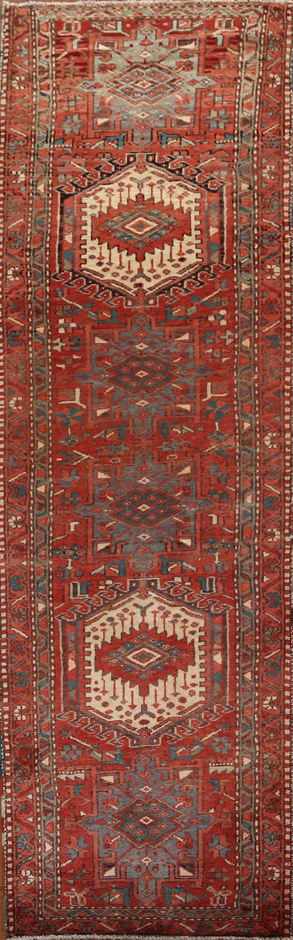 Vintage Heriz Persian Runner Rug 4x11