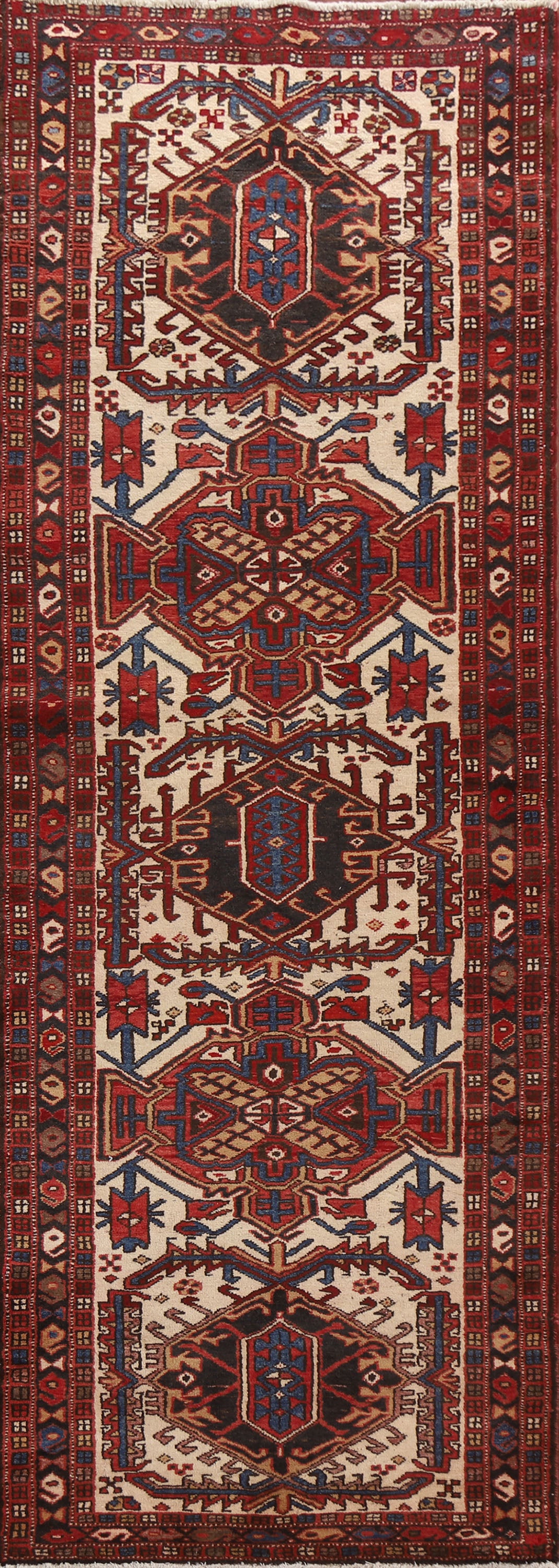 Geometric Heriz Persian Runner Rug 4x11