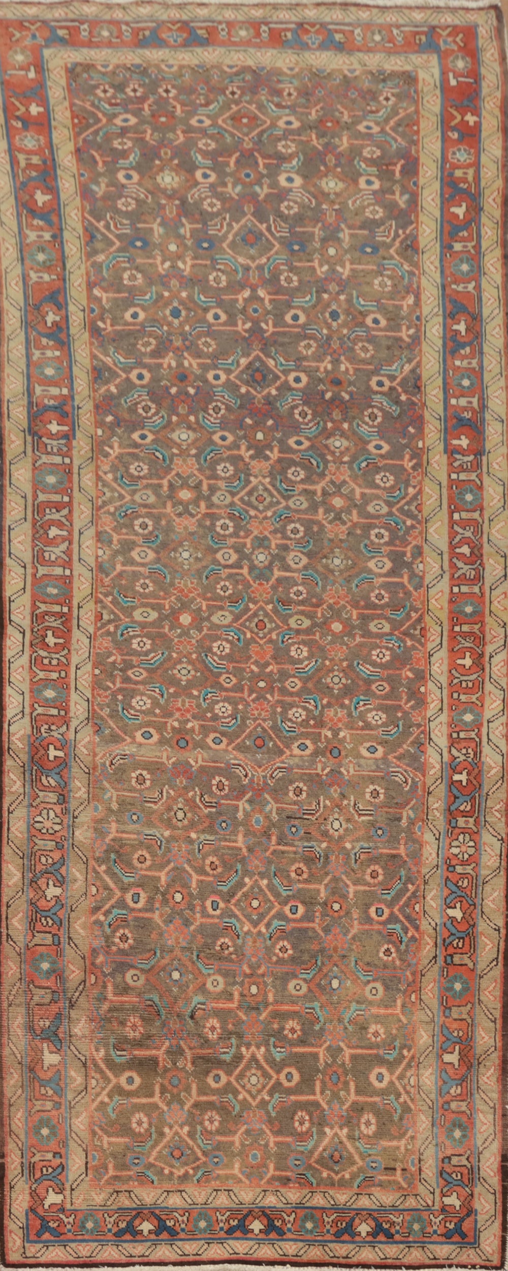 Vintage Geometric Hamedan Persian Runner Rug 4x10