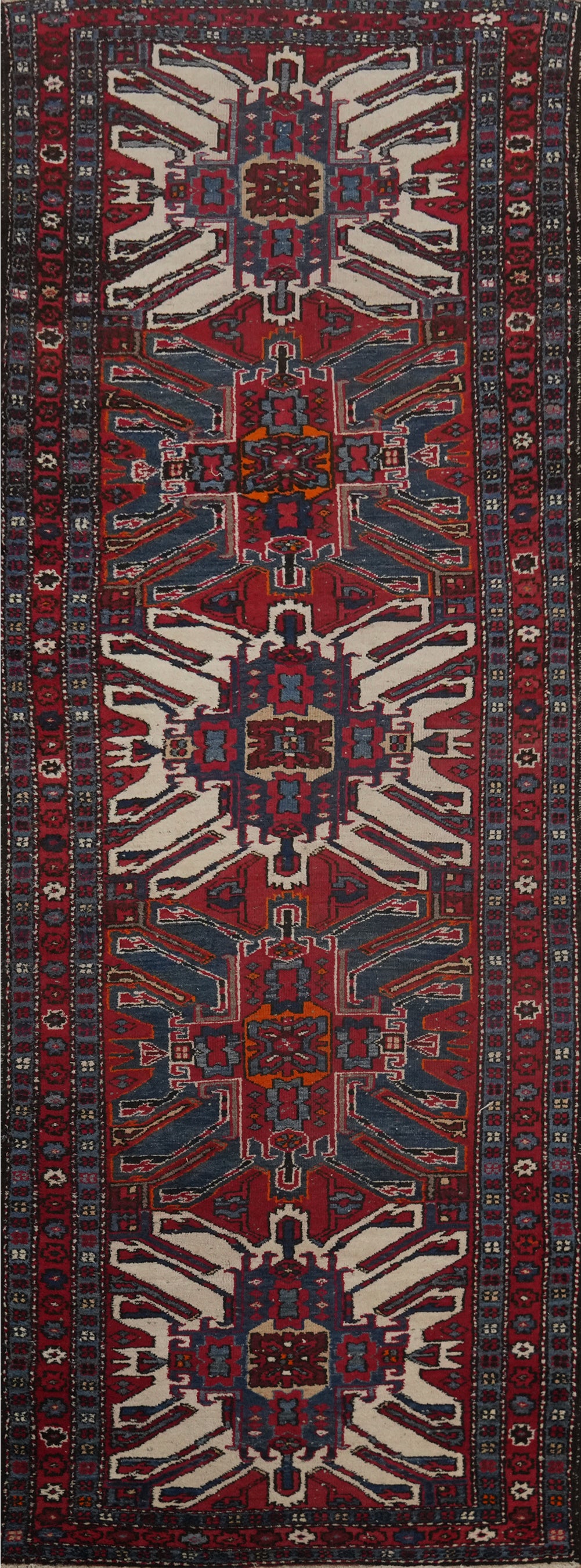 Vintage Geometric Heriz Persian Runner Rug 4x10