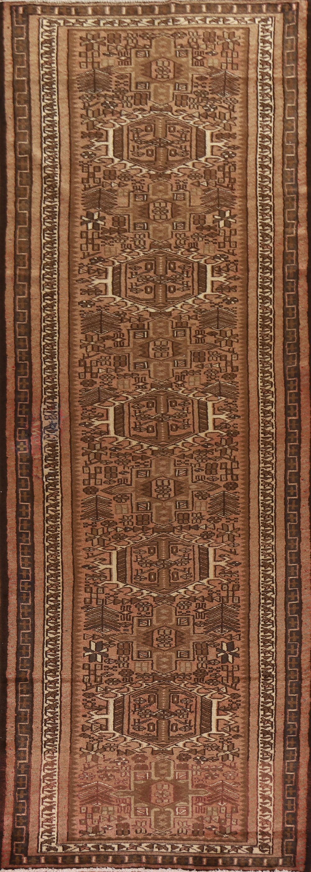 Vintage Geometric Meshkin Persian Runner Rug 3x9