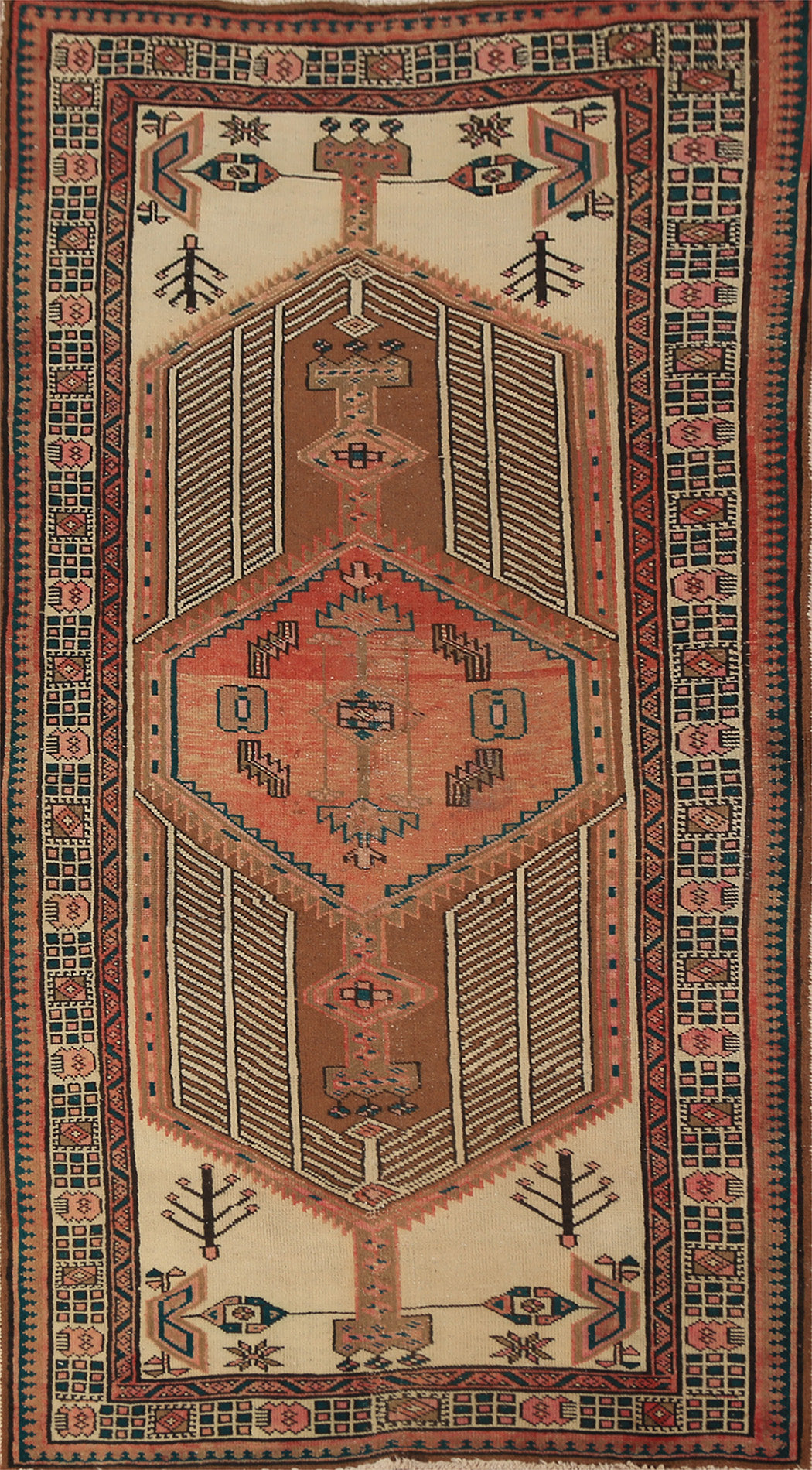 Vintage Geometric Meshkin Persian Runner Rug 4x9