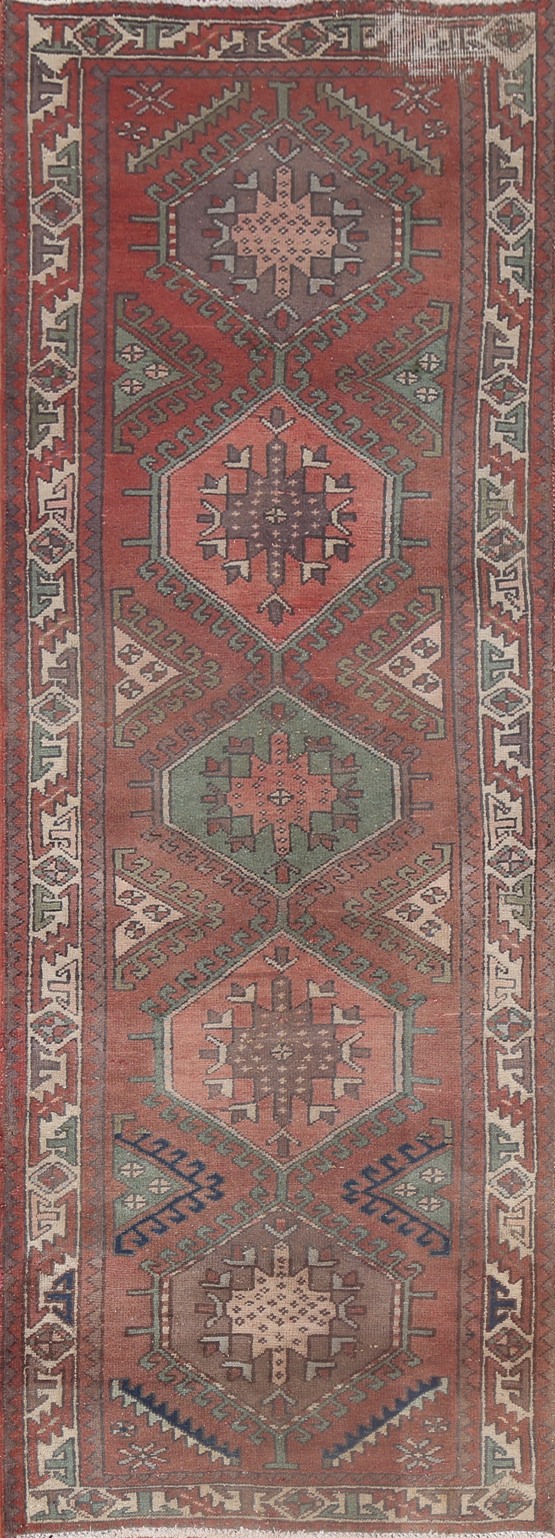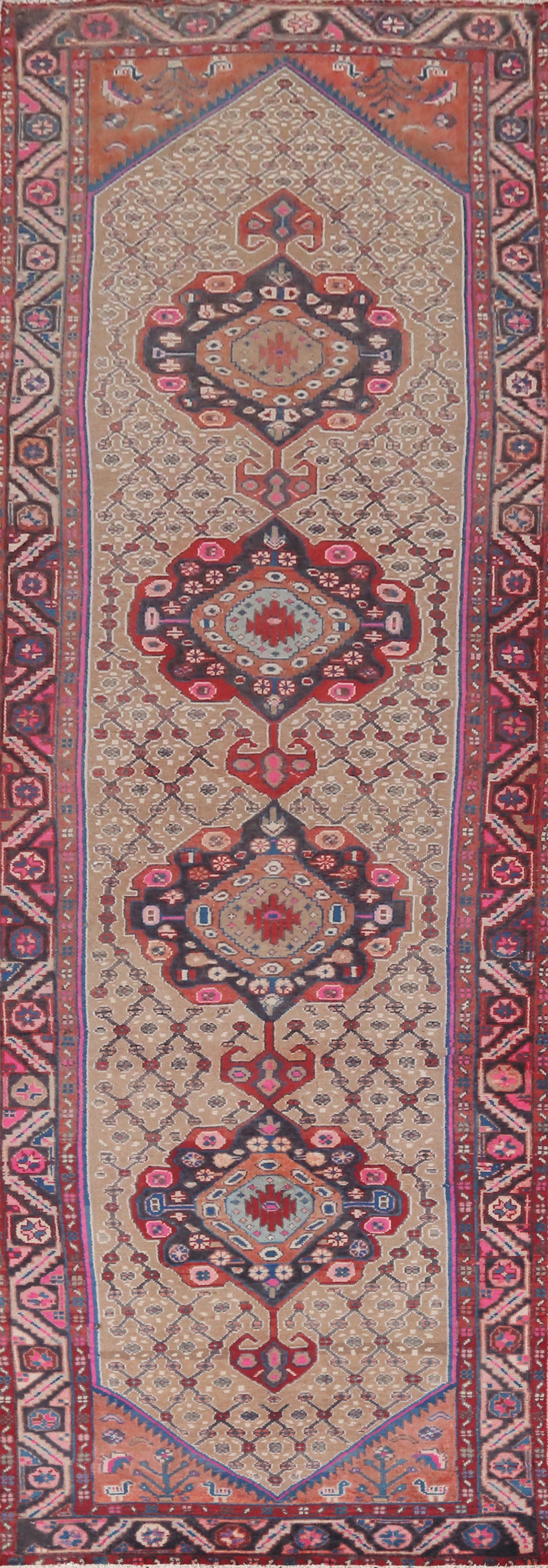 Vintage Wool Hamedan Persian Runner Rug 4x10