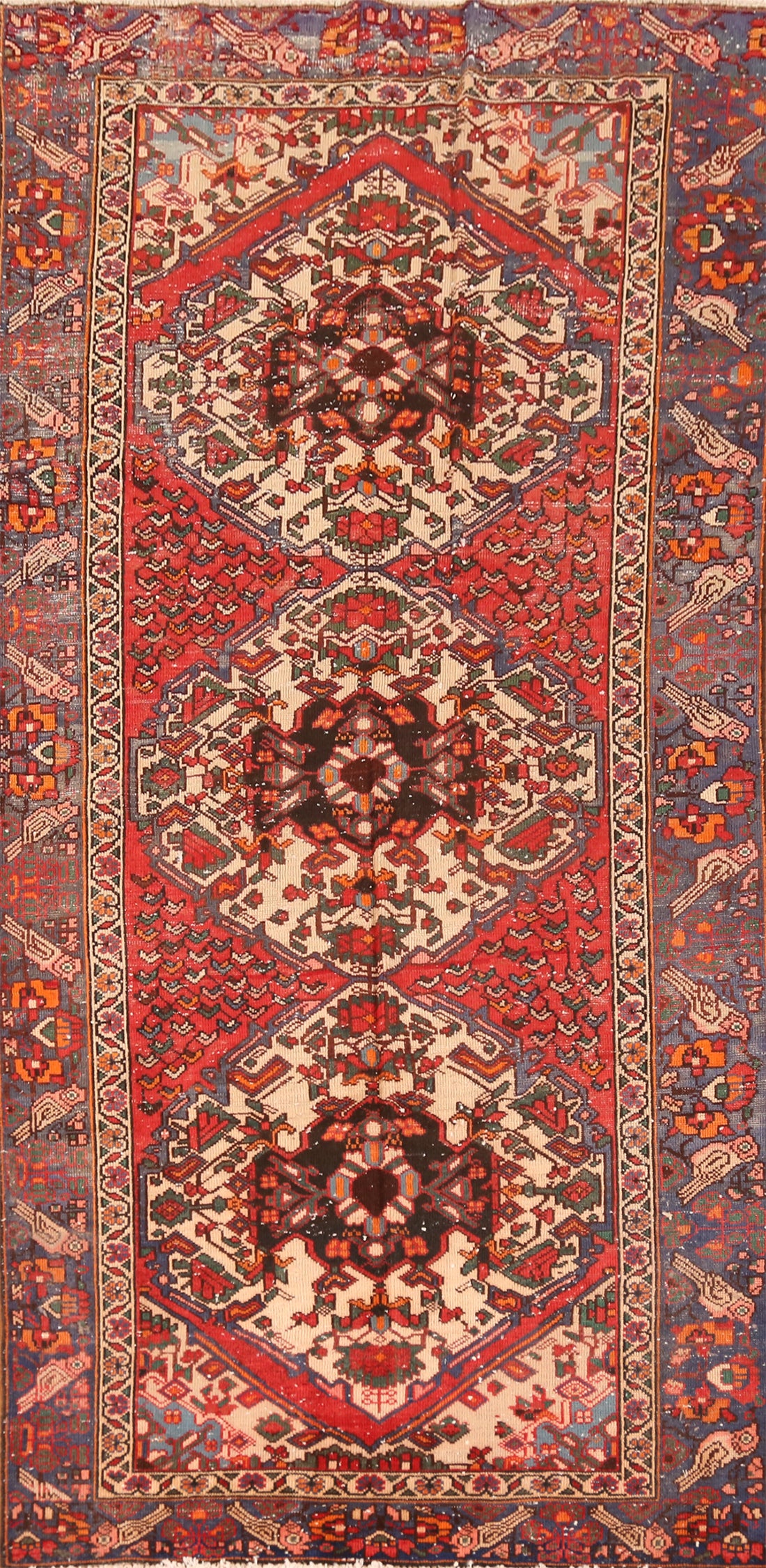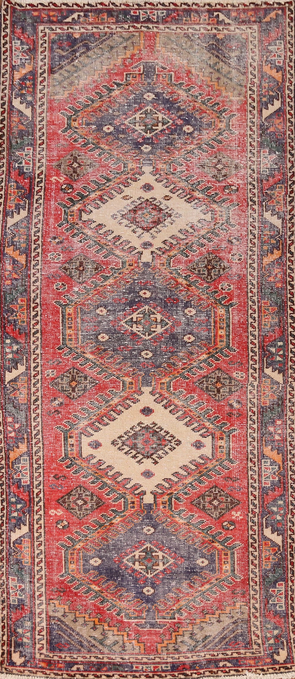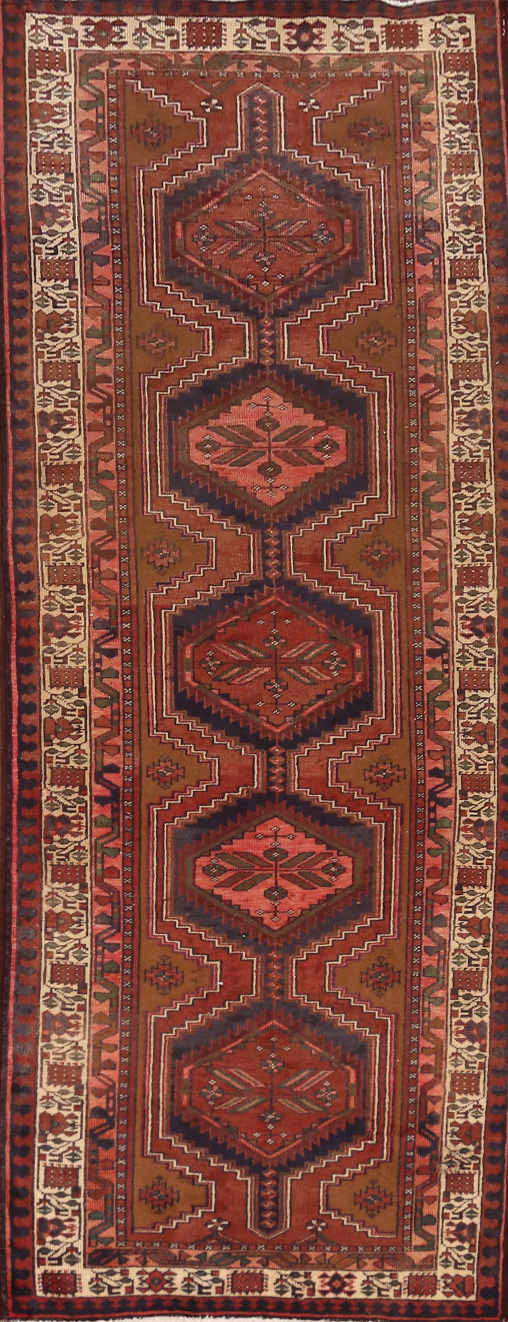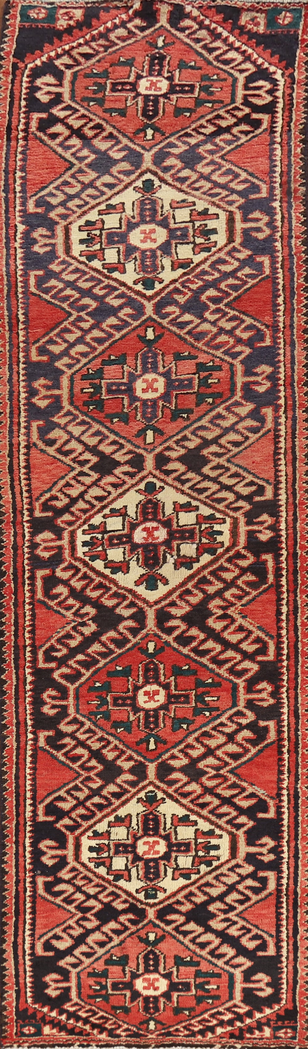 Vintage Wool Hamedan Persian Runner Rug 4x10