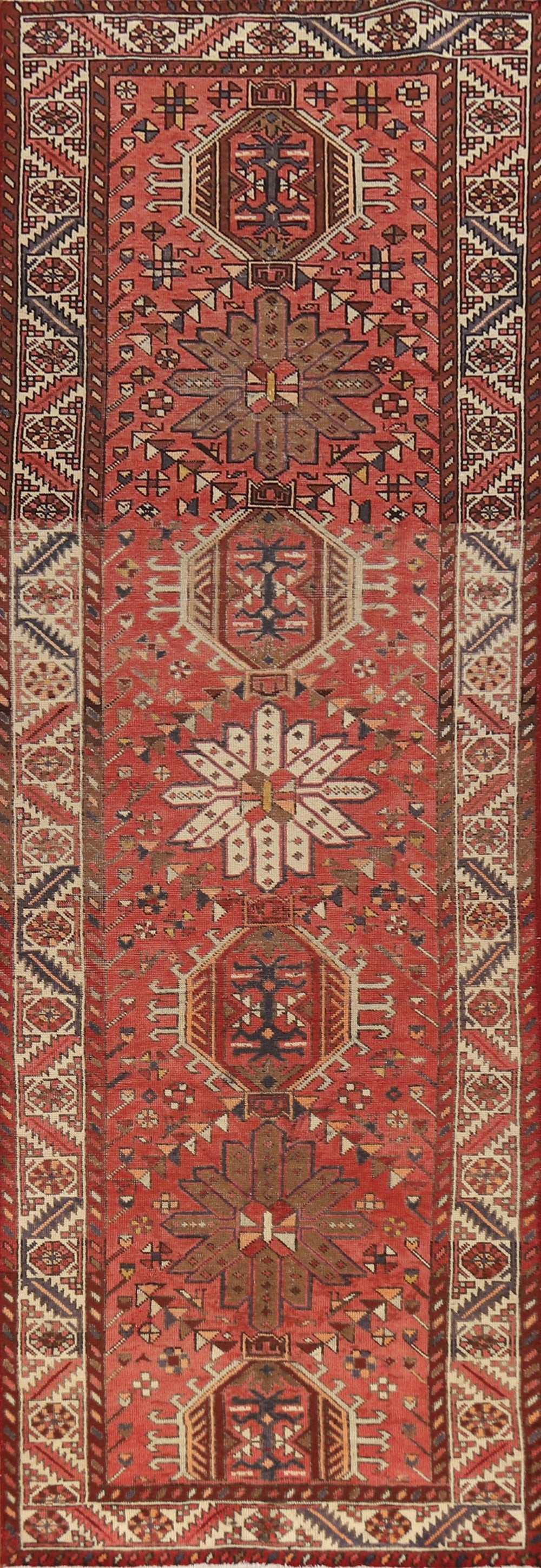 Geometric Wool Bakhtiari Persian Runner Rug 4x10