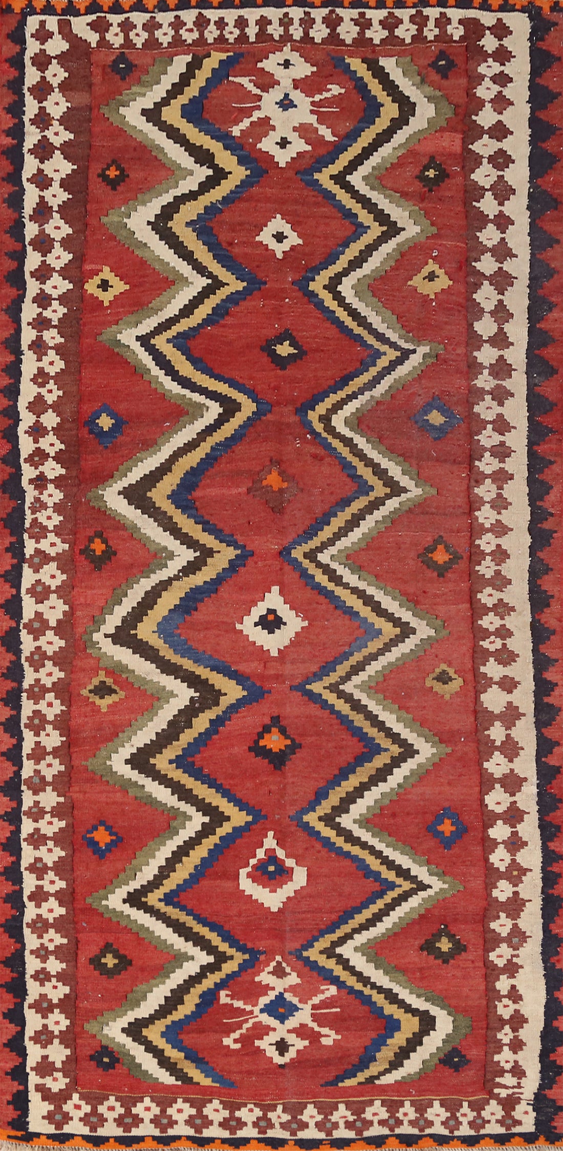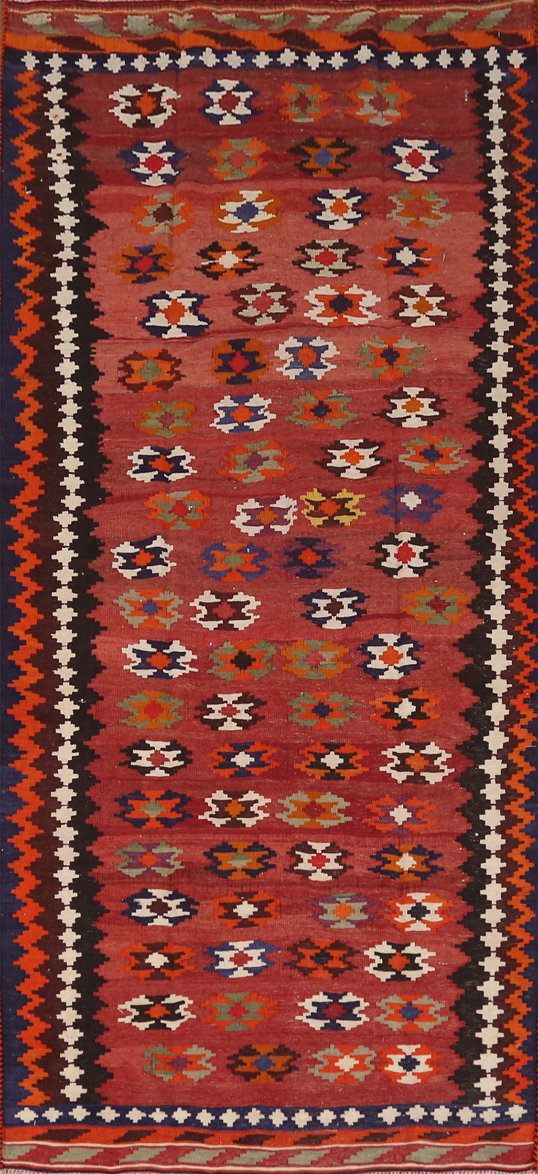 Vegetable Dye Kilim Qashqai Persian Runner Rug 4x9