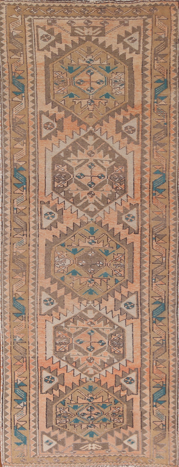 Vintage Geometric Zanjan Persian Runner Rug 4x10