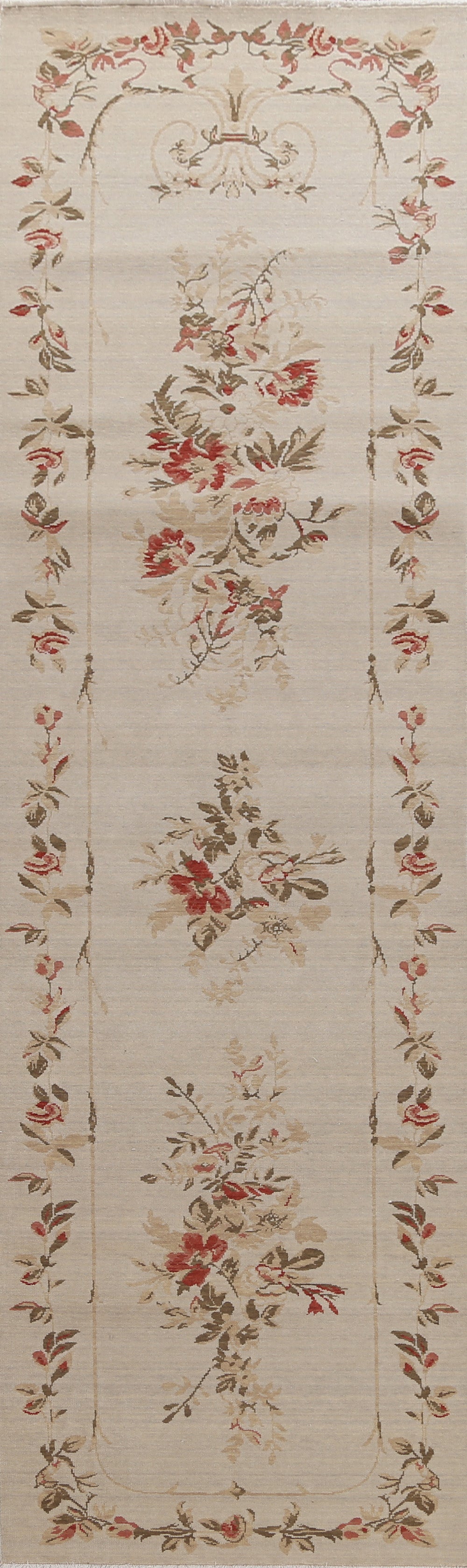 Floral Wool Aubusson Turkish Runner Rug 3x12