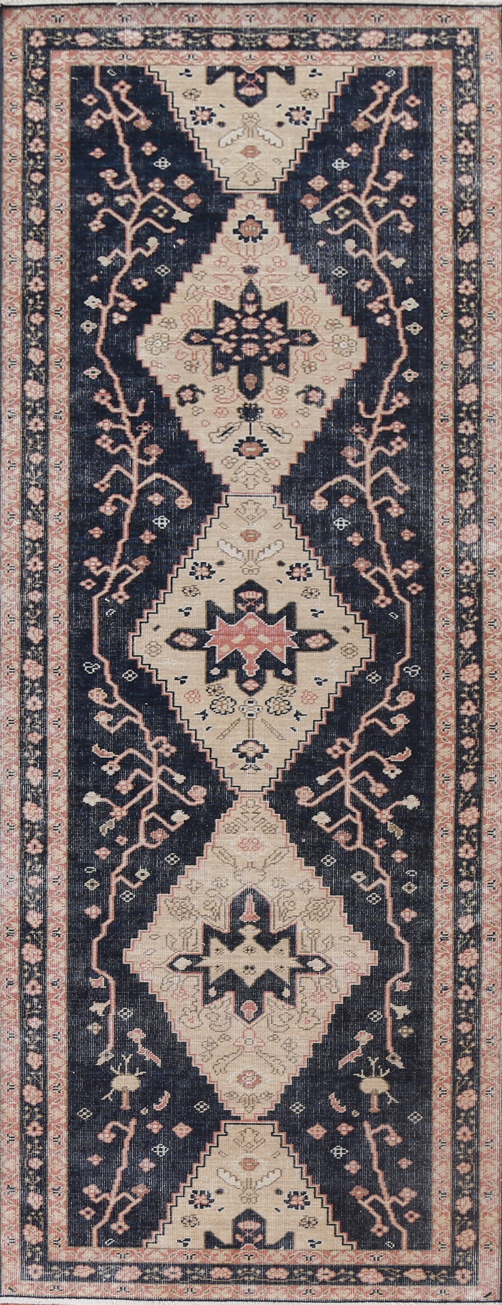 Navy Blue Floral Ziegler Turkish Runner Rug 3x12