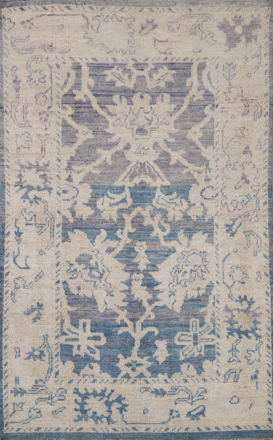 Blue Floral Oushak Vegetable Dye Area Rug 3x5