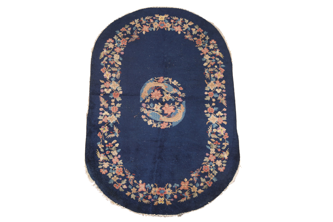 Navy Blue Art Deco Nichols Oval Vegetable Dye Area Rug 4x6