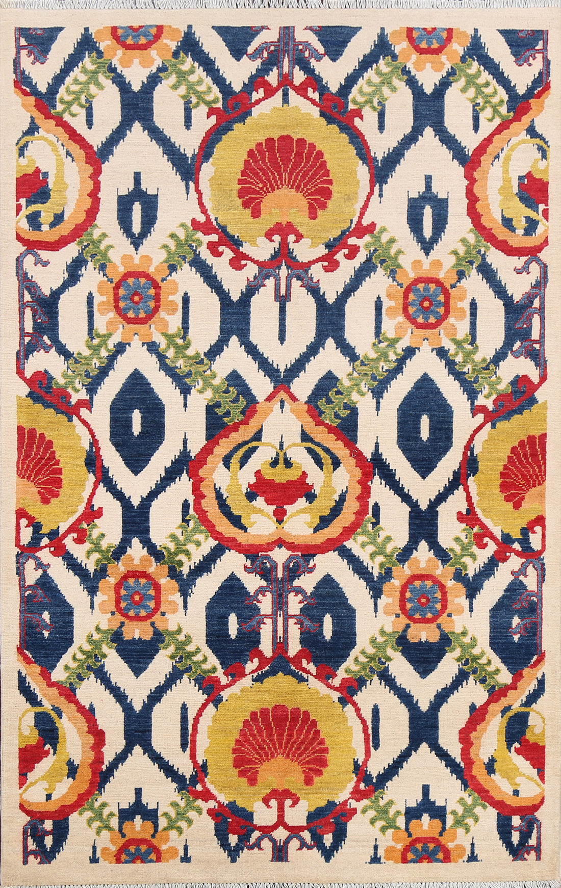 Vegetable Dye All-Over Floral Kazak Oriental Area Rug 4x6