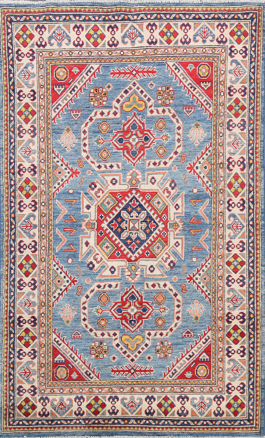 A Beautiful Genuine Pakistan Kazak rug is Hand Knotted by skillful weavers in Pakistan with...