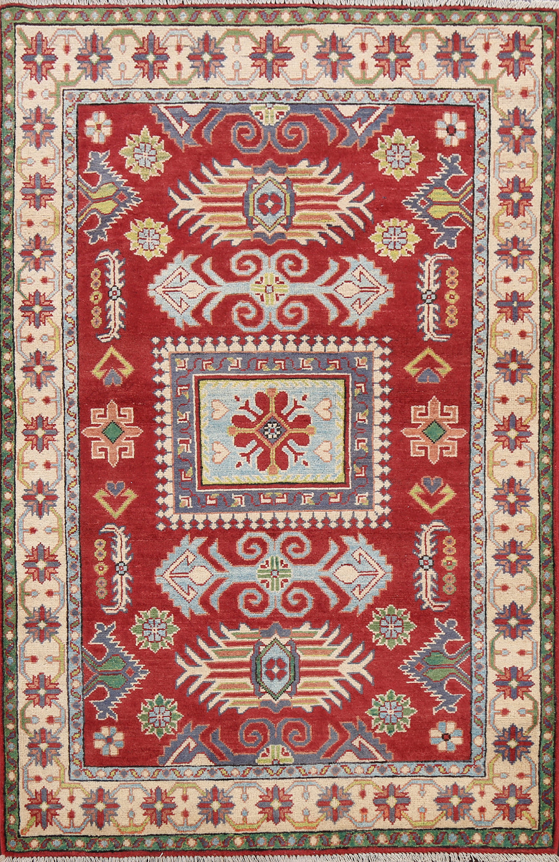 Vegetable Dye Geometric Kazak Oriental Area Rug 4x6