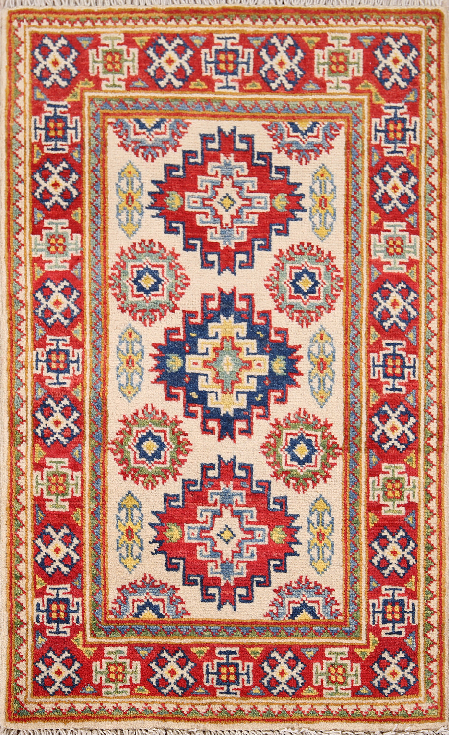 Ivory Wool Kazak Oriental Accent Rug 2x3