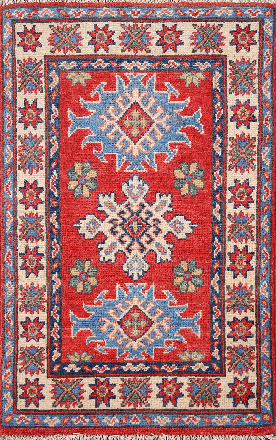 Handmade Wool Kazak Oriental Foyer Rug 2x3