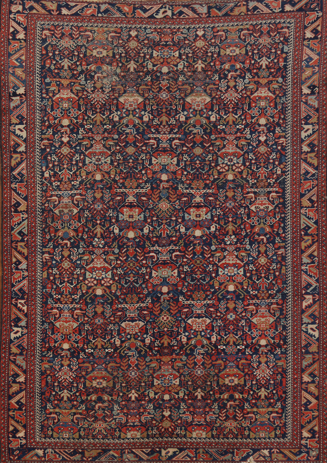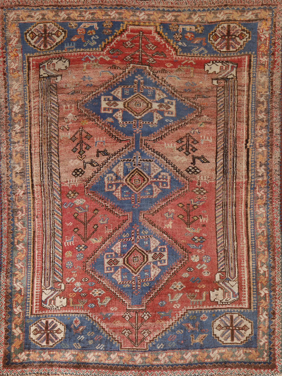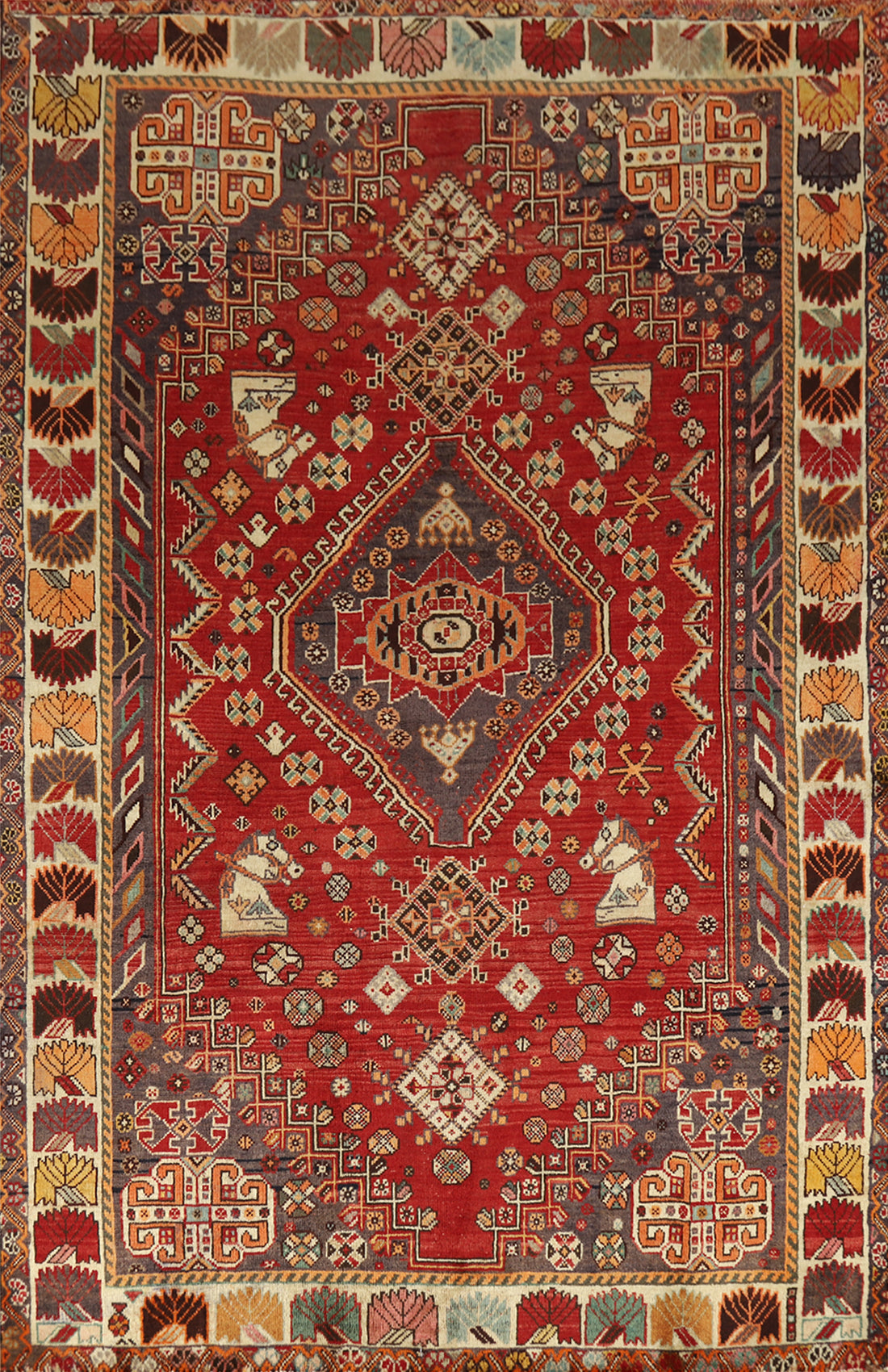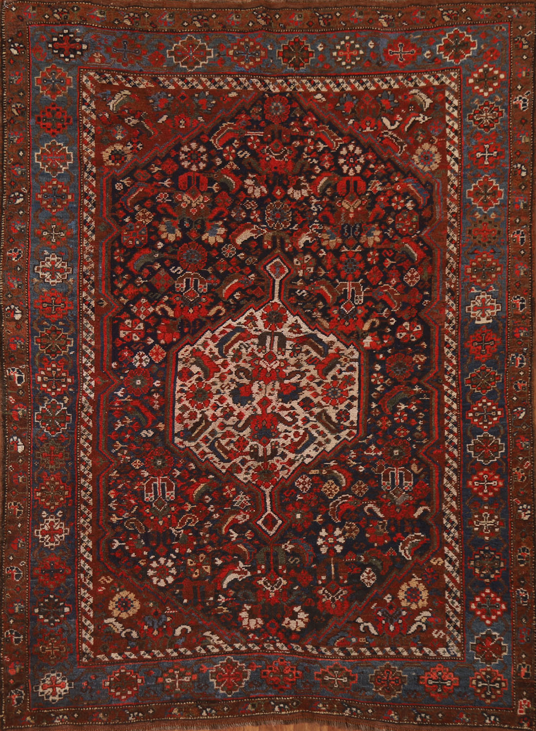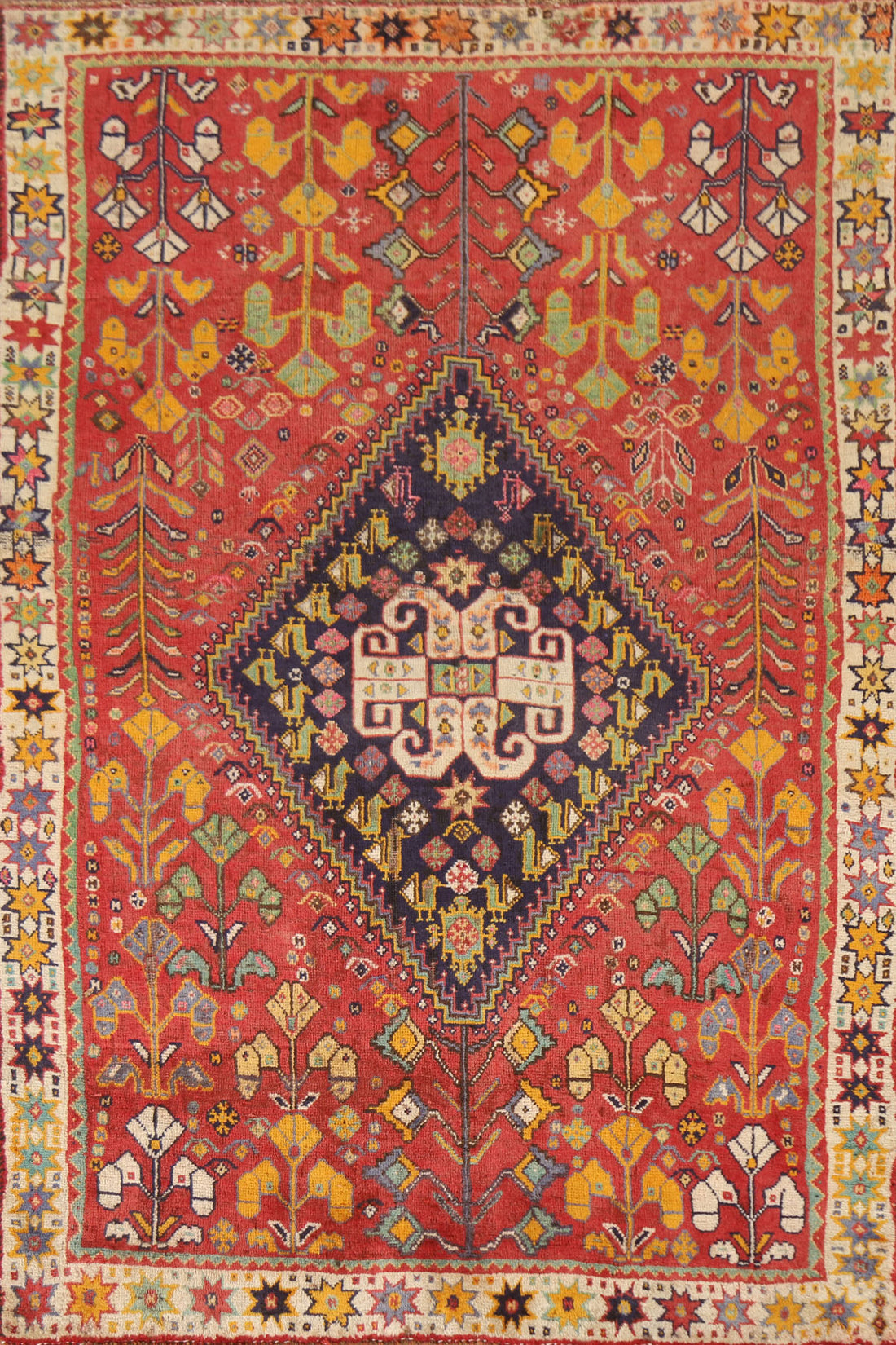 Pre-1900 Antique Tribal Qashqai Persian Rug 4x6