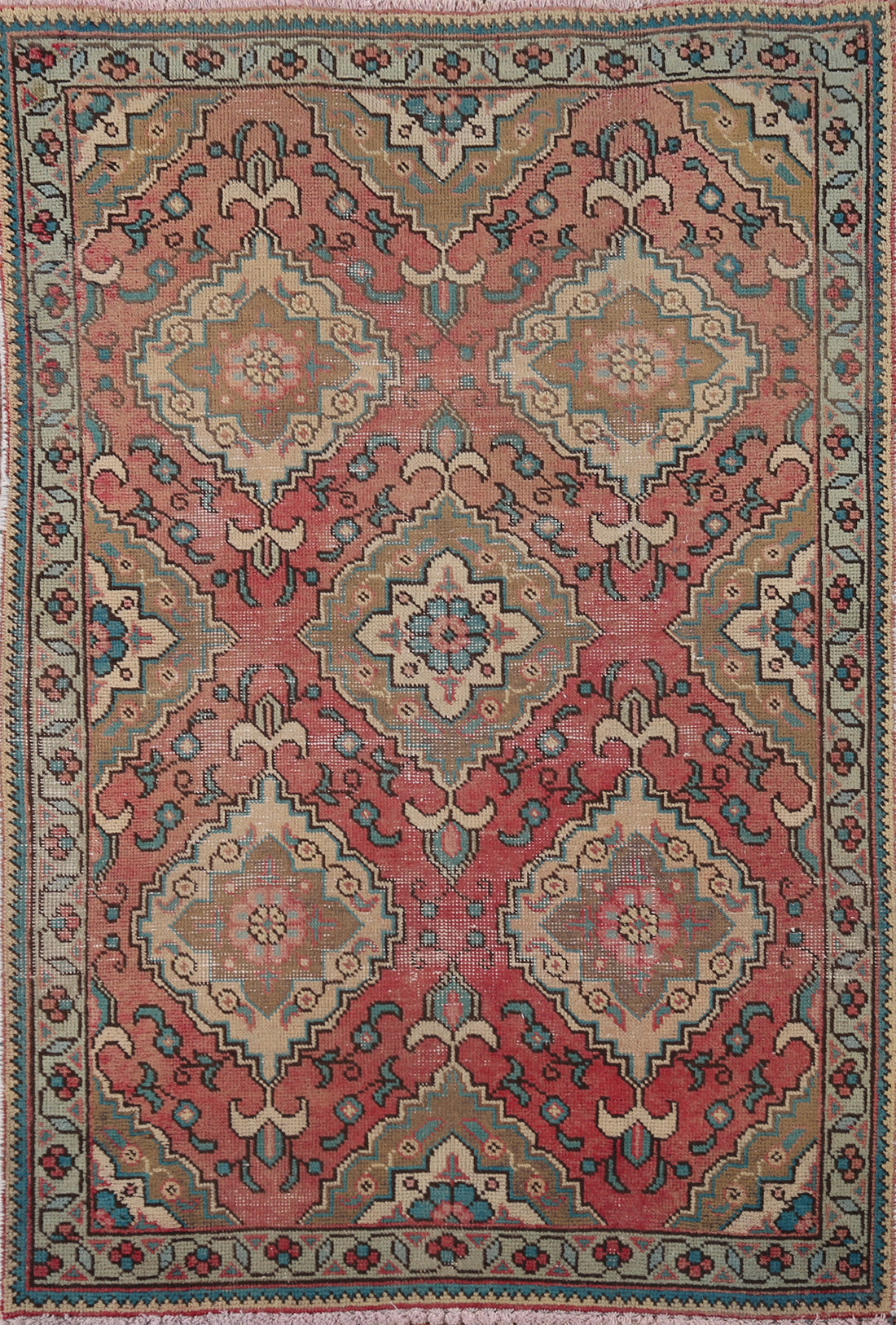 Pink Geometric Wool Tabriz Persian Accent Rug 3x5