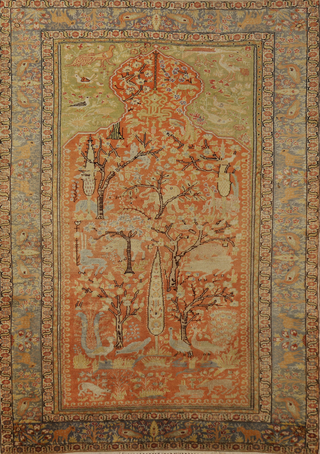 Pre-1900 Antique Silk/ Silver Qum Vegetable Dye Persian Rug 4x6