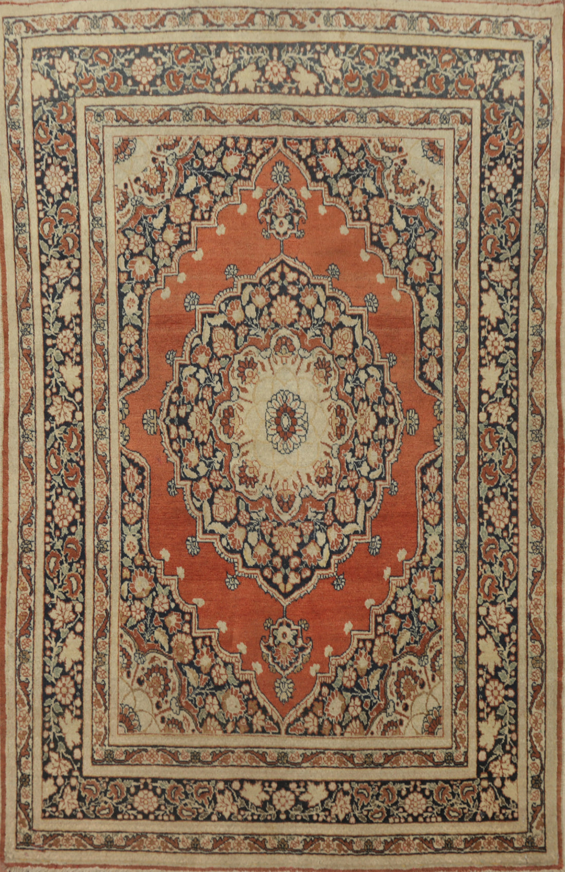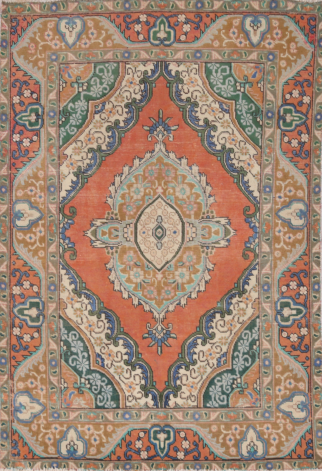 Orange Wool Medallion Tabriz Persian Rug 4x6