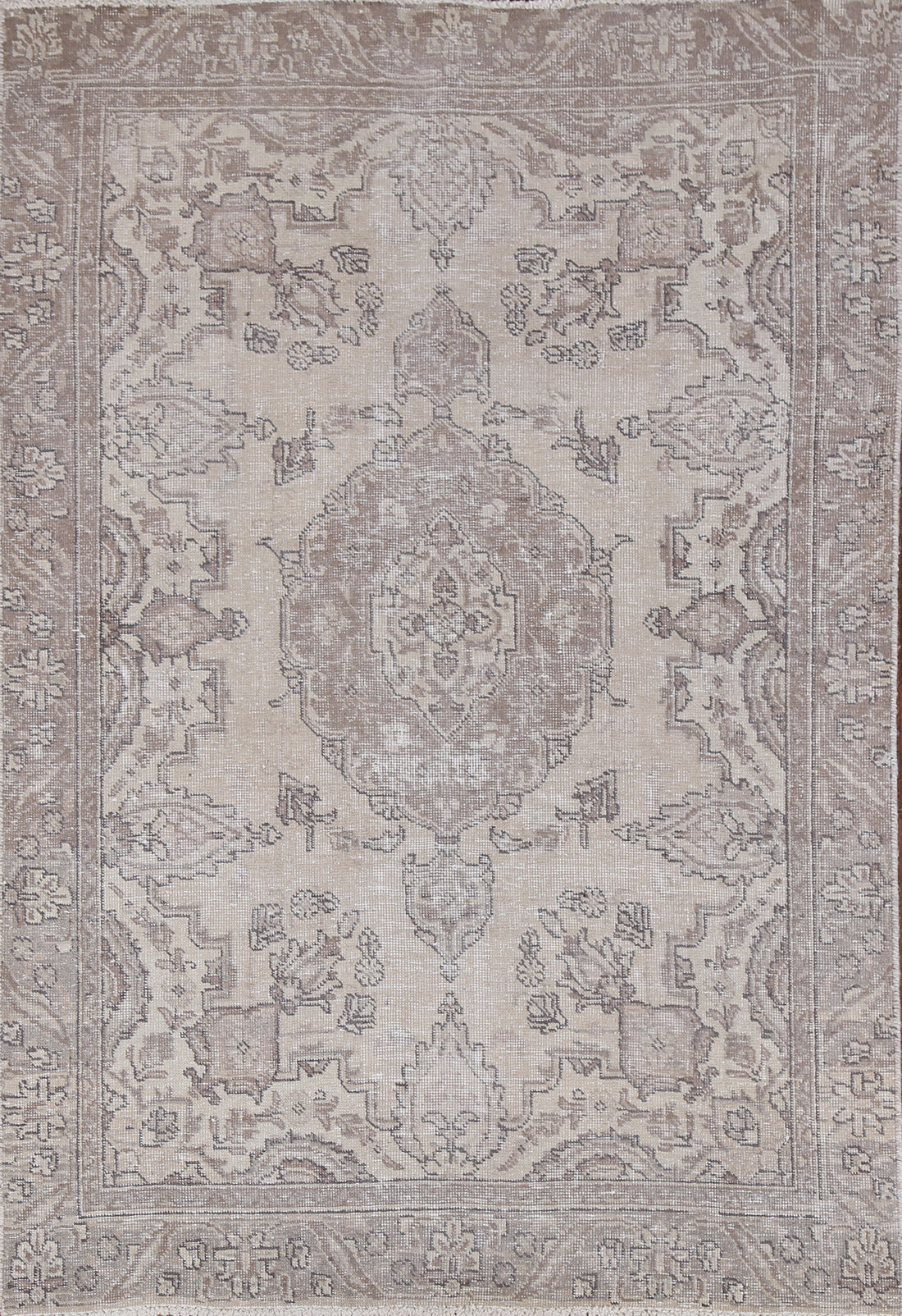 Distressed Wool Muted Tabriz Persian Rug 4x6