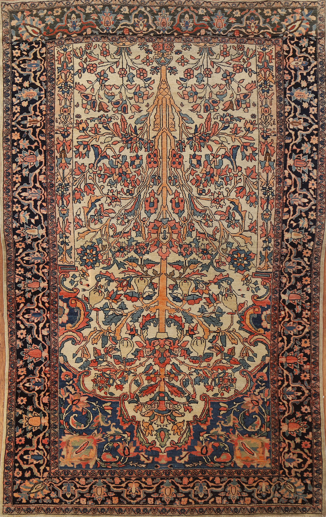 Antique Vegetable Dye Sarouk Farahan Persian Rug 4x6
