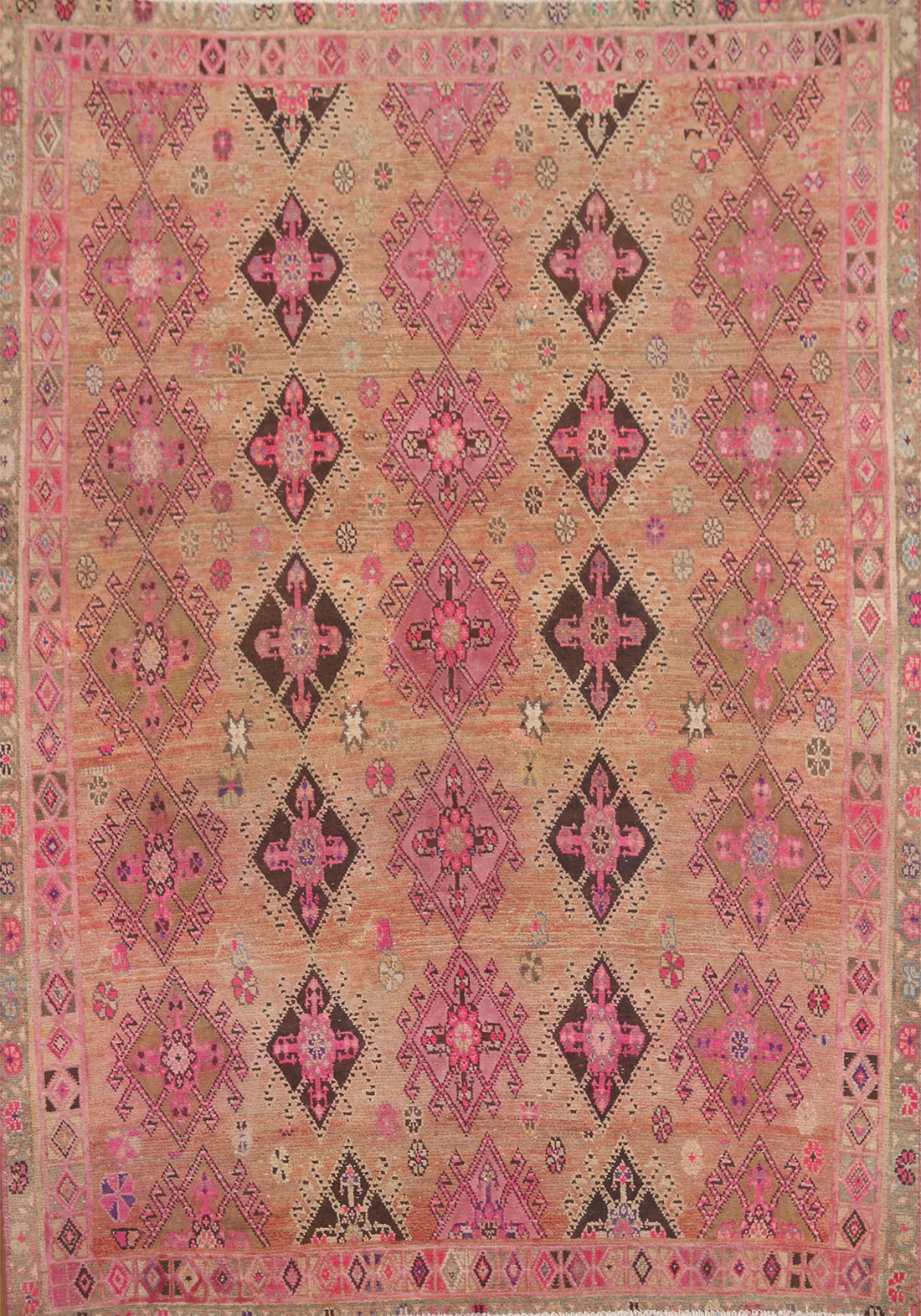 Vintage Floral Pink Sarouk Persian Rug 4x6