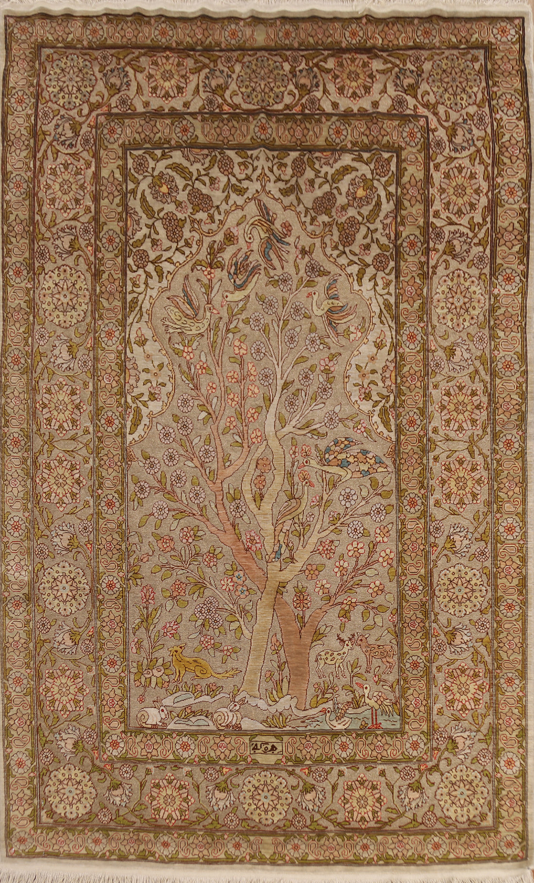 Antique Signed Vegetable Dye Silk/ Silver Hereke Persian Rug 3x5