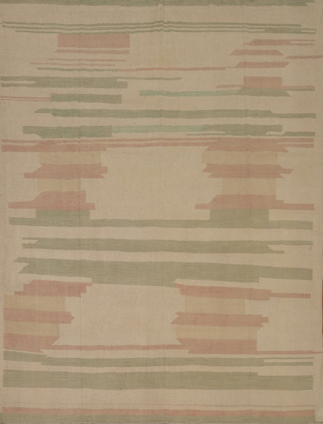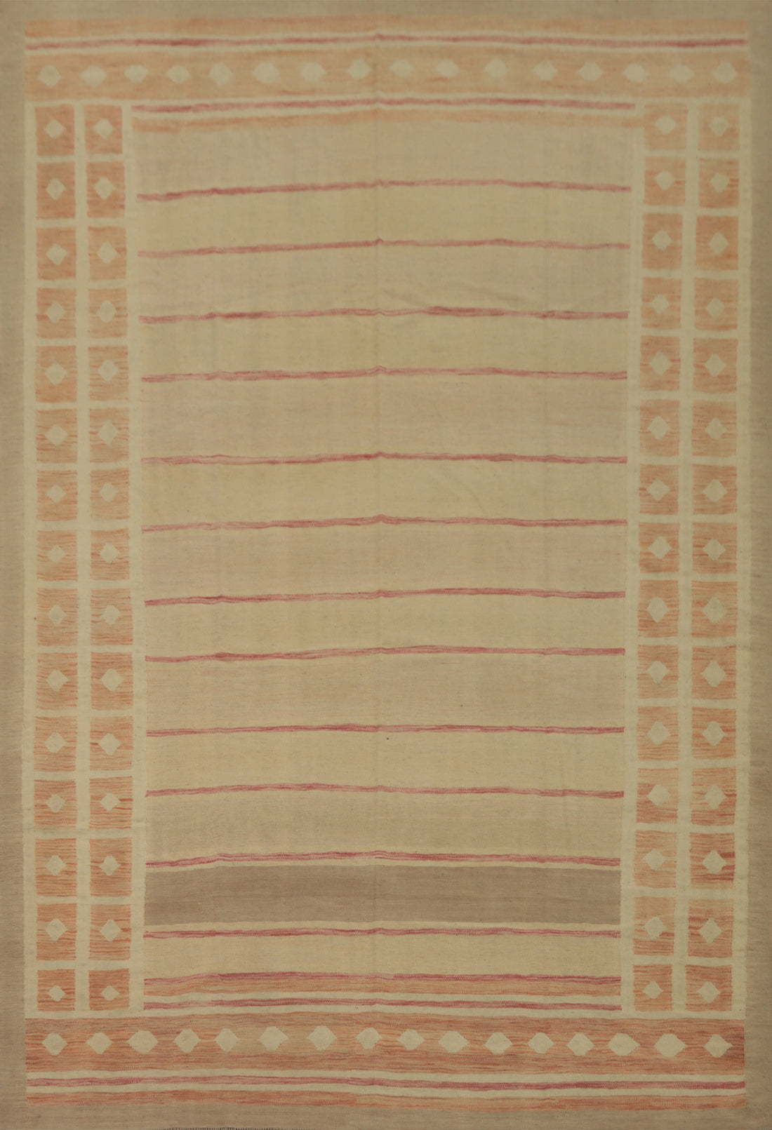Subtle Pastel Striped Kilim Flat Weave Area Rug 8x10