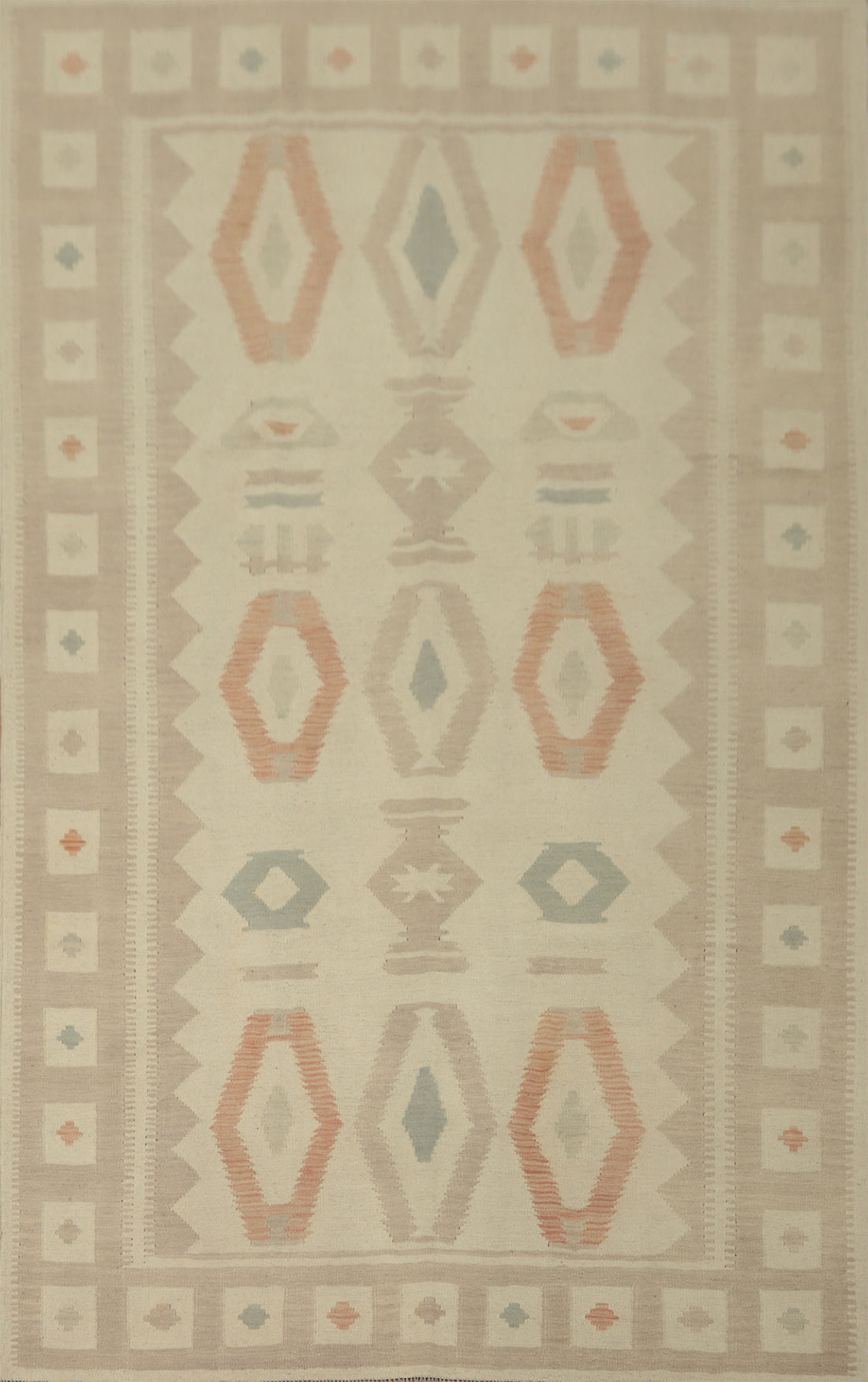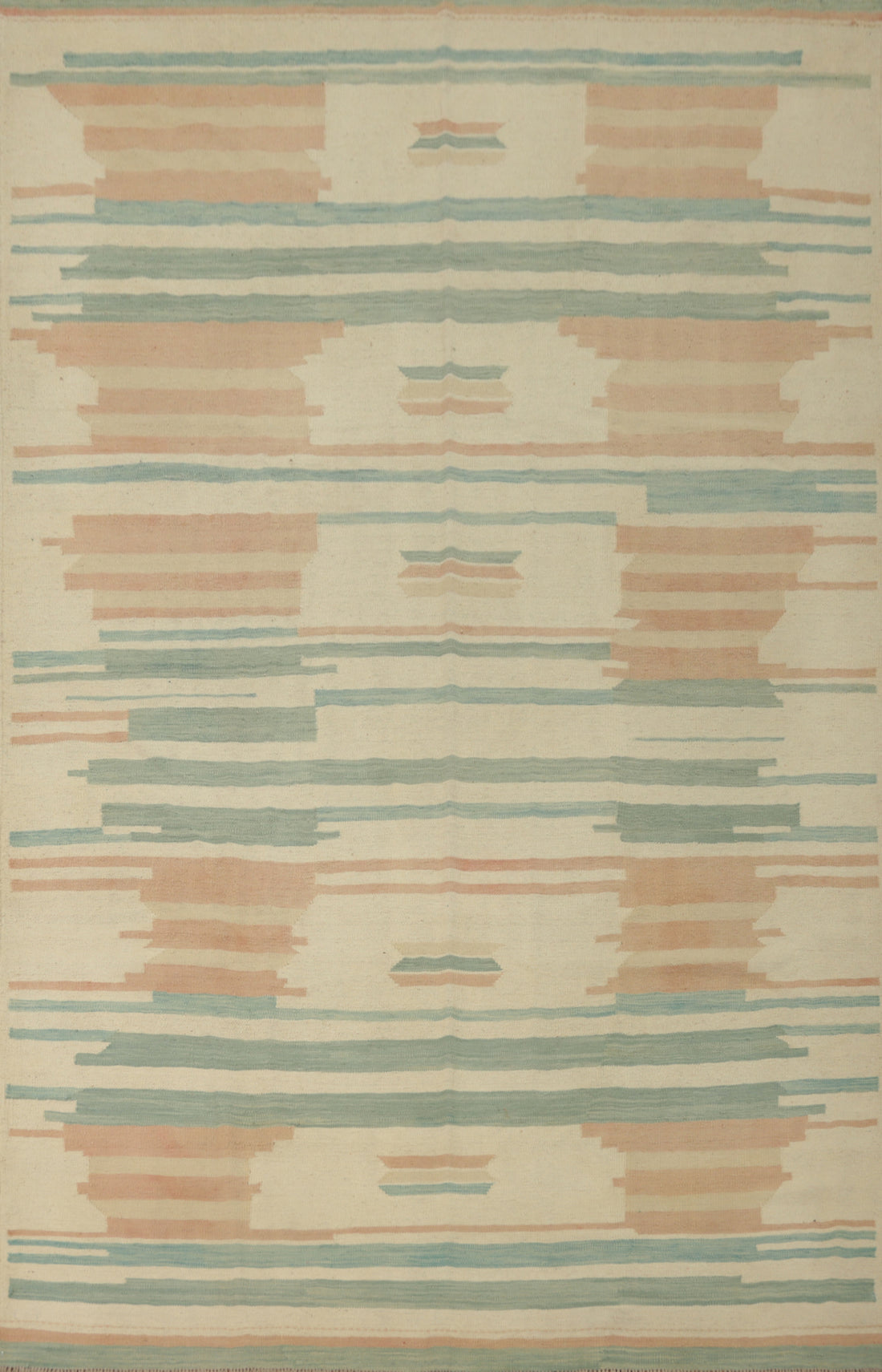 Geometric Pattern Rug with Soft Pastel Tones and Earthy Borders 7x10
