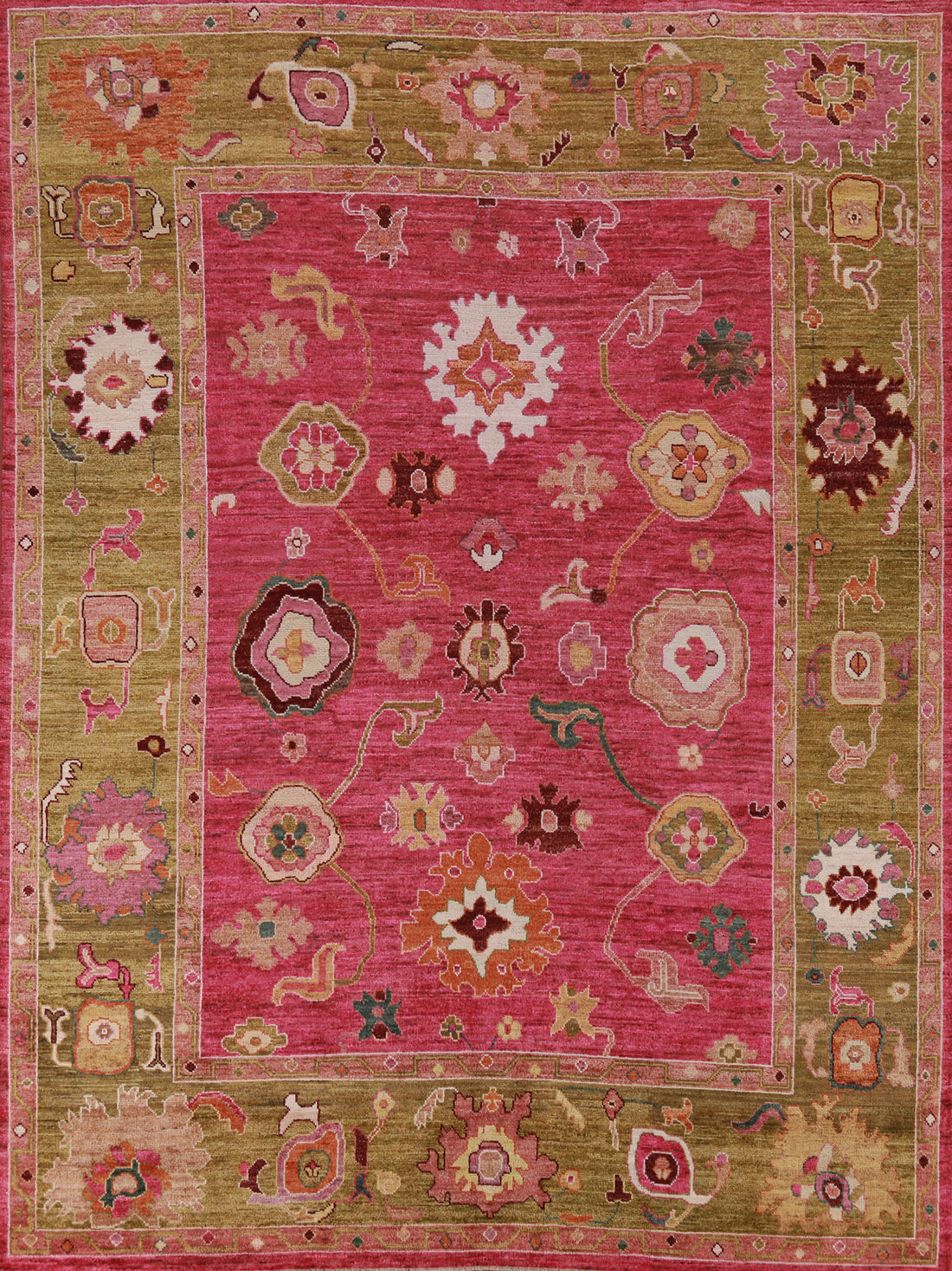 Green & Purple Floral Oushak Vegetable Dye Area Rug 8x10