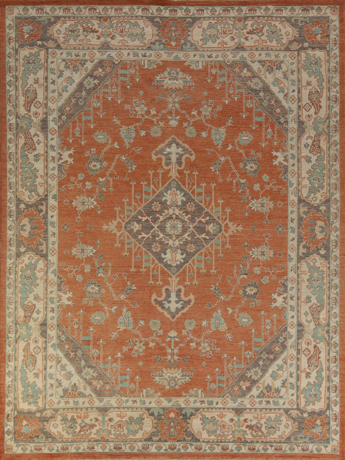 Vegetable Dye Orange Oushak Turkish Area Rug 9x12